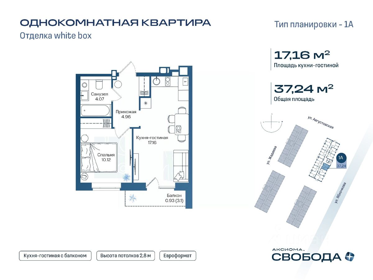 Продаётся 1-комнатная квартира в строящемся доме (Дом 1), срок сдачи: I-кв. 2029, общей площадью 37.24 кв.м., на 9 этаже. Новый жилой комплекс ''Аксиома. Свобода плюс'' от застройщика ''Аксиома'' расположен по адресу: Россия, Астрахань, Августовская улица