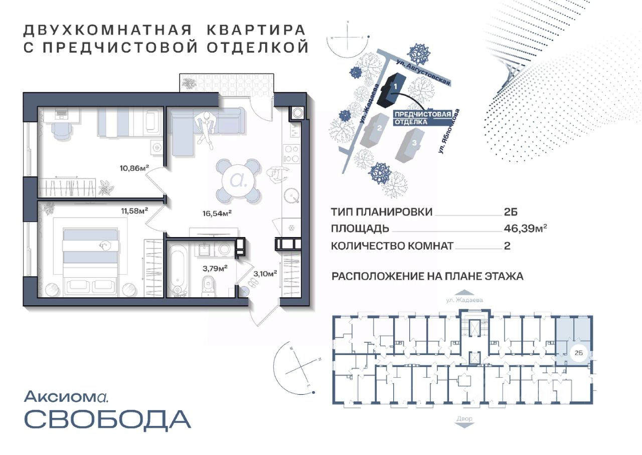 Продаётся 2-комнатная квартира в строящемся доме (Дом 1), срок сдачи: II-кв. 2026, общей площадью 46.38 кв.м., на 11 этаже. Свобода духа, свобода выбора, свобода творчества! Место, где вы точно станете автором своей жизни! Аксиома. Свобода - новый проект с современным подчерком, для тех, кто стремится жить со вкусом и по своим правилам! Это место для тех, кто ценит комфорт, но одновременно желает находиться в потоке современной жизни. Проект комфорт-класса расположен на улице Августовская 70. Это живописный район вблизи реки и развитой производственно-торговой части города с крупной транспортной развязкой. В шаговой доступности вся необходимая инфраструктура: садики, школы, спортивные и медицинские учреждения, торговый центр.