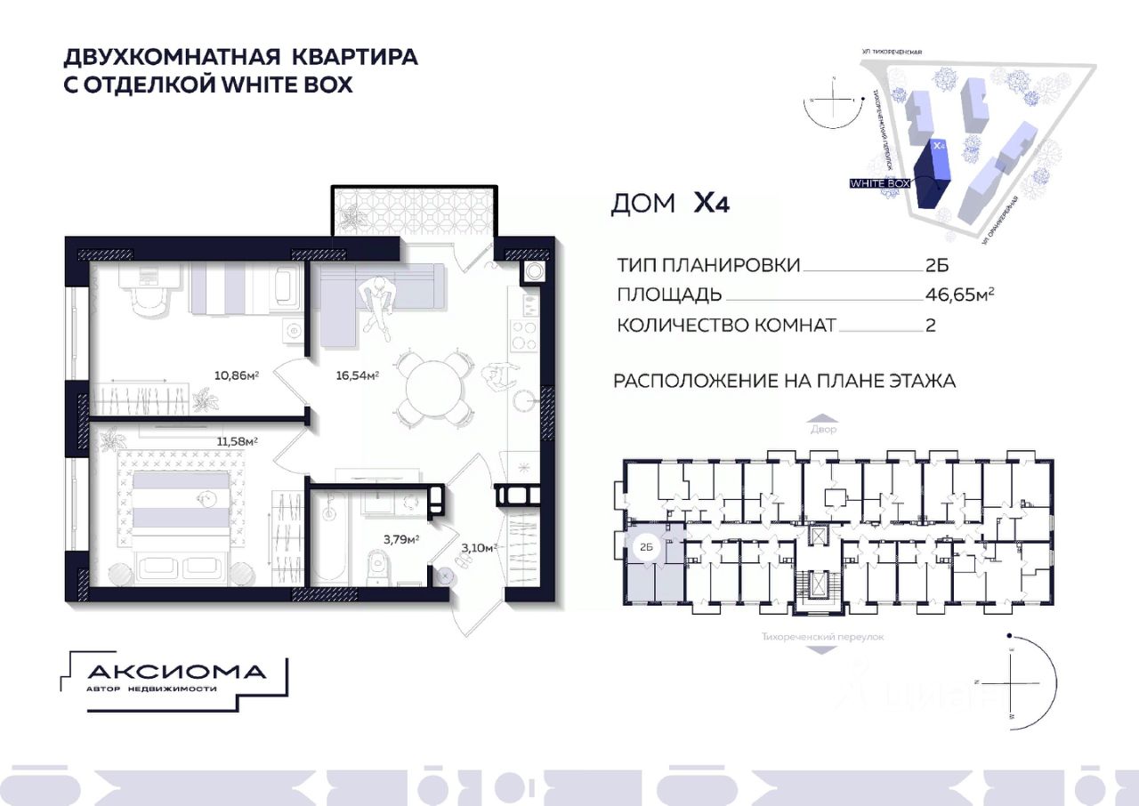 Продаётся 2-комнатная квартира в строящемся доме (Дом 4), срок сдачи: II-кв. 2027, общей площадью 46.65 кв.м., на 5 этаже. Аксиома на Тихореченской Место, где время замедляется, чтобы вы могли насладиться жизнью, вдали от городской суеты. Современный комфорт, объединенный с природой, дополненный североевропейской эклектикой делает этот проект настоящим местом силы! Местом, где хочется жить, творить, любить!
