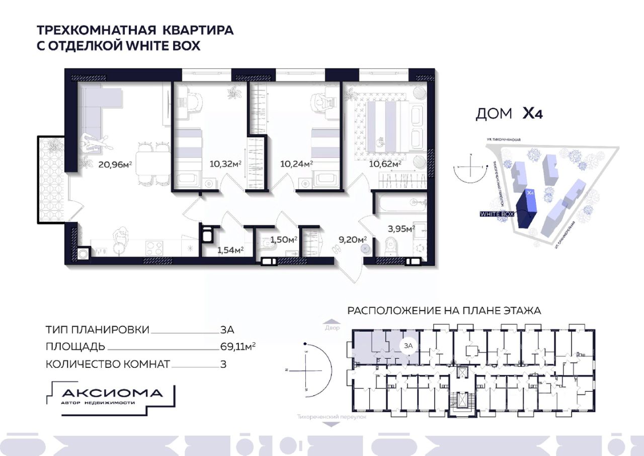 Продаётся 3-комнатная квартира в строящемся доме (Дом 4), срок сдачи: II-кв. 2027, общей площадью 69.11 кв.м., на 5 этаже. Аксиома на Тихореченской Место, где время замедляется, чтобы вы могли насладиться жизнью, вдали от городской суеты. Современный комфорт, объединенный с природой, дополненный североевропейской эклектикой делает этот проект настоящим местом силы! Местом, где хочется жить, творить, любить!