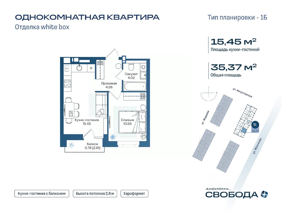 Продаётся 1-комнатная квартира в строящемся доме (Дом 1), срок сдачи: I-кв. 2029, общей площадью 35.37 кв.м., на 7 этаже. Новый жилой комплекс ''Аксиома. Свобода плюс'' от застройщика ''Аксиома'' расположен по адресу: Россия, Астрахань, Августовская улица