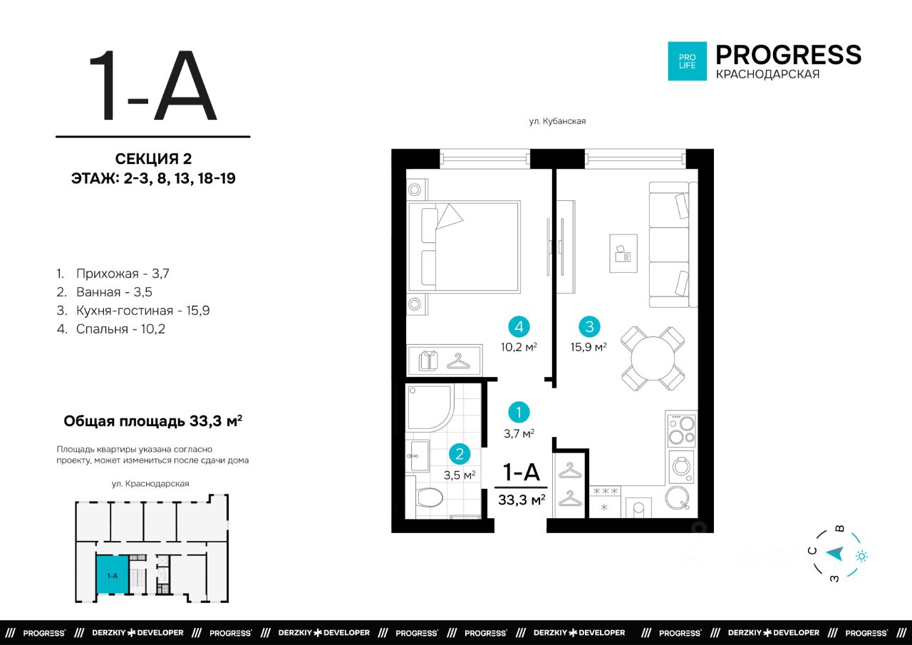 Продаётся 1-комнатная квартира в строящемся доме (Дом 1), срок сдачи: I-кв. 2028, общей площадью 33.33 кв.м., на 8 этаже. Новый жилой комплекс ''Точка'' от застройщика ''Будущее'' расположен по адресу: г. Астрахань, ул. Краснодарской, 43а