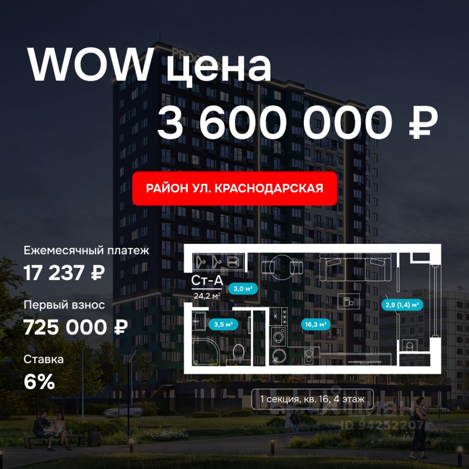 Продаётся студия в строящемся доме (Дом 1), срок сдачи: I-кв. 2028, общей площадью 24.47 кв.м., на 4 этаже. Новый жилой комплекс ''Точка'' от застройщика ''Будущее'' расположен по адресу: г. Астрахань, ул. Краснодарской, 43а