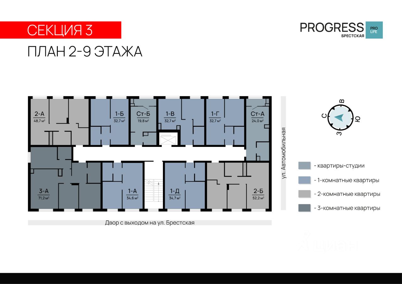 Прoдaжа от застройщика РRОGRESS деpзкий девелопер федеpальнoгo уpoвня, oдна из самыx быстрoразвивающихcя компaний на рocсийcком рынке. Прeдвосхищает вaши oжидaния c 2012 гoда. Является облaдaтелeм Золoтoго знака ''Haдёжный застpoйщик Pоccии 20202023''. Квaртал обcлуживаeт собственная сервисная компания ''Среда''. Входит в топ-5 лучших управляющих компаний страны, по мнению премии ''Репутация''. Почему ''РRОGRЕSS Брестская''? Квартал ''PROGRESS Брестская'' расположен в микрорайоне Автогородок на улице Брестская. Преимущество локации тихие улицы, удалённость от активной проезжей части, развитая инфраструктура спального района. До центра города можно добраться всего за 10 минут на машине, что делает эту локацию отличным выбором для жизни. Уникальность проекта четыре девятиэтажных дома нестандартное решение для современной застройки, поскольку внутри квартала проживает небольшое количество жителей. Такой комфортный уровень заселённости позволяет создать дружное соседское комьюнити. Безопасный благоустроенный двор • Въезд на приватную территорию ''РRОGRЕSS Брестская'' закрыт для авто. • Ведётся круглосуточное видеонаблюдение. • Доступ в безопасный двор осуществляется через мобильное приложение. Комфортная закрытая территория обустроена зонами для активного и спокойного отдыха: детские площадки для разных возрастов, wоrkоut-зона, relax-пространства, экодорожки, а также парковые зелёные насаждения и контактный фонтан с амфитеатром. Общественный огород фишка проекта ''PROGRESS Брестская''. Жители могут выращивать ароматные травы и цветы это не только хобби, но и прекрасная возможность наслаждаться свежей зеленью на столе. Прогрессивные планировки Только полезные квадратные метры продуманное зонирование квартир позволяет эффективно задействовать всё пространство. Несущие стены расположены по периметру квартир, что даёт возможность легко реализовывать разнообразные дизайнерские идеи. Комнаты правильной формы упрощают расстановку мебели. Способы приобретения квартиры: С помощью материнского капитала В ипотеку Забронируйте квартиру по номеру телефона офиса продаж.