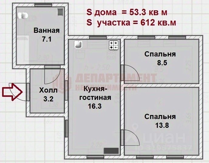 Кирпичный и керамзито-бетонный дом 53,3 кв.м на участке 612 кв.м. Расположение:Кировский район, пос.Инициативный. Назначение участка: ИЖС. В доме кухня/гостиная 16,3 кв.м и 2 прилегающие спальни. Просторный санузел с ванной. Там же котёл АОГВ, колонка для горячей воды. Отопление газовое индивидуальное! Прихожая и выход на крыльцо с навесом. Во всём доме пластиковые окна, биметаллические радиаторы, натяжные потолки, на полу линолеум. Состояние весьма приличное. Потолки 2.60, как в обычной квартире. Кухонный гарнитур, сплит, спутниковая тарелка ''3 колор'' - остаются покупателям. За порогом ровный, свободный участок (6 с гаком соток). Забор из дерева и сетки-рабицы выходит на 2 улицы (участок угловой!). Яма-септик на 2 кольца. На участке несколько плодоносящих деревьев, хоз.постройки (амбары) и много, действительно много места для: постройки большого 2-го дома, парковки, бассейна, зоны барбекю, огорода, цветника - чего душе угодно ). Дорога до дома пристойная и ровная. Асфальт и совсем чуть грунтовки. Если пешком, то до остановки Махачкалинская - 400 м. До ерика Казачий - 700 м. Магазины в пешем досупе, конечно, есть. Всё покажем и расскажем. Долгов, ипотек в хозяйстве нет. Собственник взрослый. Документы готовы. Ещё раз подчеркну: участок ровный, широкий, пустой. Идеально подходит под увеличение имеющегося дома или под стр-во ещё одного (для растущих детей, например). Звоните, пишите! Можем и поторговаться )