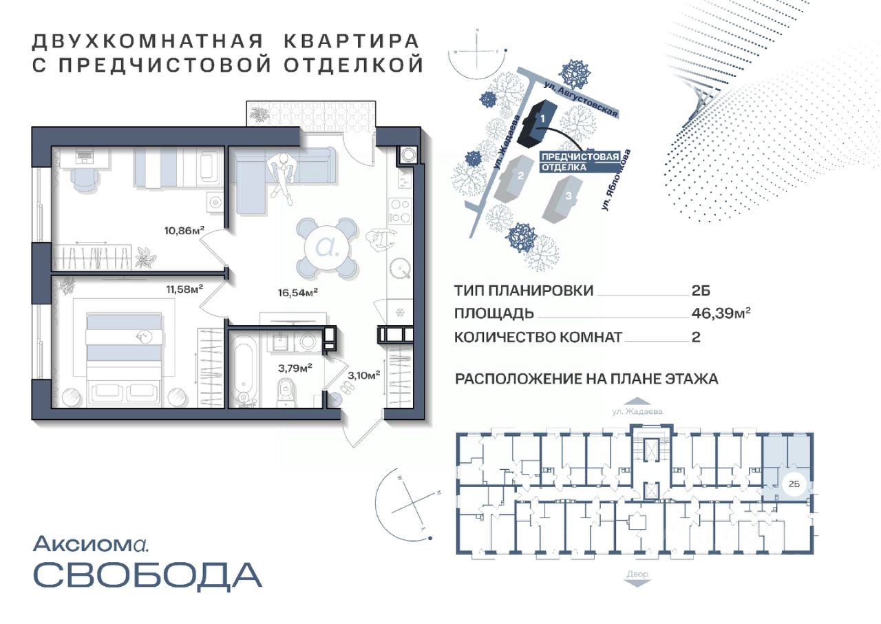 Продаётся 3-комнатная квартира в строящемся доме (Дом 2), срок сдачи: II-кв. 2026, общей площадью 58.54 кв.м., на 10 этаже. Свобода духа, свобода выбора, свобода творчества! Место, где вы точно станете автором своей жизни! Аксиома. Свобода - новый проект с современным подчерком, для тех, кто стремится жить со вкусом и по своим правилам! Это место для тех, кто ценит комфорт, но одновременно желает находиться в потоке современной жизни. Проект комфорт-класса расположен на улице Августовская 70. Это живописный район вблизи реки и развитой производственно-торговой части города с крупной транспортной развязкой. В шаговой доступности вся необходимая инфраструктура: садики, школы, спортивные и медицинские учреждения, торговый центр.