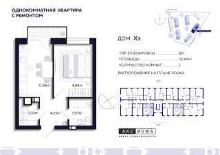 Продаётся 1-комнатная квартира в строящемся доме (Дом 3), срок сдачи: I-кв. 2026, общей площадью 32.49 кв.м., на 4 этаже. Аксиома на Тихореченской Место, где время замедляется, чтобы вы могли насладиться жизнью, вдали от городской суеты. Современный комфорт, объединенный с природой, дополненный североевропейской эклектикой делает этот проект настоящим местом силы! Местом, где хочется жить, творить, любить!
