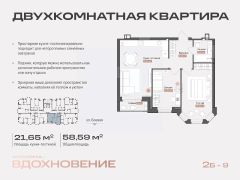 Продаётся 2-комнатная квартира в строящемся доме (Дом 50А), срок сдачи: IV-кв. 2027, общей площадью 58.59 кв.м., на 8 этаже. Новый жилой комплекс ''Аксиома.Вдохновение'' от застройщика ''Аксиома'' расположен по адресу: Астрахань, ул., Боевая, 50А