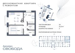 Продаётся 2-комнатная квартира в строящемся доме (Дом 3), срок сдачи: IV-кв. 2026, общей площадью 53.36 кв.м., на 6 этаже. Свобода духа, свобода выбора, свобода творчества! Место, где вы точно станете автором своей жизни! Аксиома. Свобода - новый проект с современным подчерком, для тех, кто стремится жить со вкусом и по своим правилам! Это место для тех, кто ценит комфорт, но одновременно желает находиться в потоке современной жизни. Проект комфорт-класса расположен на улице Августовская 70. Это живописный район вблизи реки и развитой производственно-торговой части города с крупной транспортной развязкой. В шаговой доступности вся необходимая инфраструктура: садики, школы, спортивные и медицинские учреждения, торговый центр.