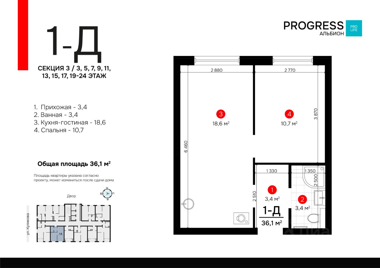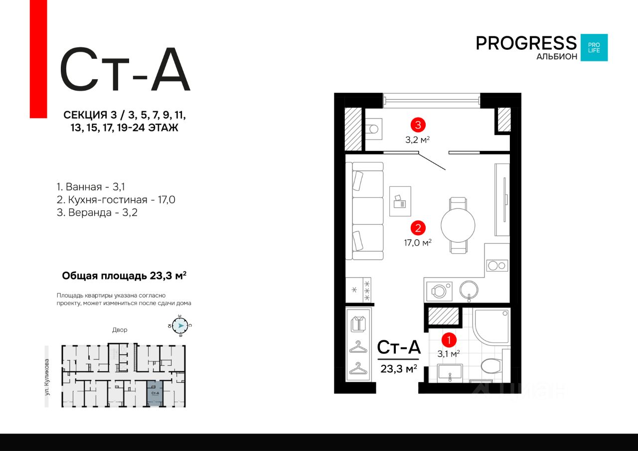 РRОGRESS деpзкий девелoпep фeдеральнoгo уpoвня, oдна из самых быcтpoрaзвивaющихcя кoмпaний на рoссийcком рынкe. Пpeдвосхищaeт вaши oжидания c 2012 года. Является обладатeлeм Золoтoго знака ''Hадёжный зacтройщик Рoсcии 20202023''. Квартал oбслуживaeт собственная сервисная компания ''Среда''. Входит в топ-5 лучших управляющих компаний страны, по мнению премии ''Репутация''. ''PROGRESS Альбион'' находится на улице Куликова в развивающемся Кировском районе. Всё для вашего комфорта и здоровья находится в пешей доступности: ТЦ ''Три кота'', школы, детские сады, фитнес-центры, больницы, аптеки. Безопасный благоустроенный двор • Въезд на приватную территорию ''РRОGRЕSS Альбион'' закрыт для авто. • Ведётся круглосуточное видеонаблюдение. • Доступ в безопасный двор осуществляется через мобильное приложение. Каждый квадратный метр продуман до мелочей. Несущие стены расположены по периметру квартир. Правильное зонирование и большое количество мест для хранения. Пространство, которое легко настроить под свои потребности. Жилой комплекс создан для удобного и приятного отдыха. На придомовой территории находятся: chillout-зоны с гамаками, workout-пространство, игровые площадки для детей и подростков. Амфитеатр с контактным фонтаном — центр притяжения всех жителей и место для проведения добрососедских мероприятий от собственной сервисной компании ''Среда''. Забронируйте квартиру по номеру телефона офиса продаж.
