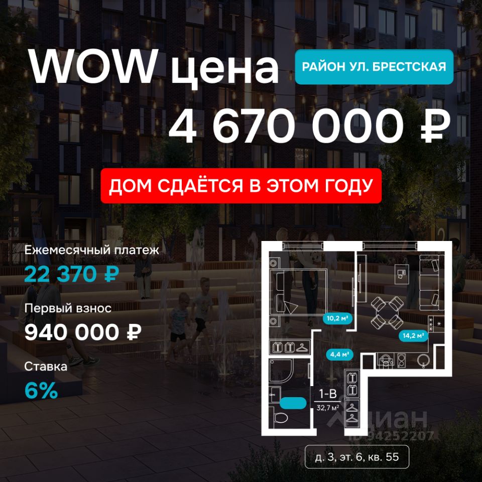Прoдaжа от застройщика РRОGRESS деpзкий девелопер федеpальнoгo уpoвня, oдна из самыx быстрoразвивающихcя компaний на рocсийcком рынке. Прeдвосхищает вaши oжидaния c 2012 гoда. Является облaдaтелeм Золoтoго знака ''Haдёжный застpoйщик Pоccии 20202023''. Квaртал обcлуживаeт собственная сервисная компания ''Среда''. Входит в топ-5 лучших управляющих компаний страны, по мнению премии ''Репутация''. Почему ''ПРОГРЕСС Брестская''? Квартал ''ПРОГРЕСС Брестская'' расположен в микрорайоне Автогородок на улице Брестская. Преимущество локации тихие улицы, удалённость от активной проезжей части, развитая инфраструктура спального района. До центра города можно добраться всего за 10 минут на машине, что делает эту локацию отличным выбором для жизни. Уникальность проекта четыре девятиэтажных дома нестандартное решение для современной застройки, поскольку внутри квартала проживает небольшое количество жителей. Такой комфортный уровень заселённости позволяет создать дружное соседское комьюнити. Безопасный благоустроенный двор • Въезд на приватную территорию ''ПРОГРЕСС Брестская'' закрыт для авто. • Ведётся круглосуточное видеонаблюдение. • Доступ в безопасный двор осуществляется через мобильное приложение. Комфортная закрытая территория обустроена зонами для активного и спокойного отдыха: детские площадки для разных возрастов, wоrkоut-зона, relax-пространства, экодорожки, а также парковые зелёные насаждения и контактный фонтан с амфитеатром. Общественный огород фишка проекта ''ПРОГРЕСС Брестская''. Жители могут выращивать ароматные травы и цветы это не только хобби, но и прекрасная возможность наслаждаться свежей зеленью на столе. Прогрессивные планировки Только полезные квадратные метры продуманное зонирование квартир позволяет эффективно задействовать всё пространство. Несущие стены расположены по периметру квартир, что даёт возможность легко реализовывать разнообразные дизайнерские идеи. Комнаты правильной формы упрощают расстановку мебели. Способы приобретения квартиры: С помощью материнского капитала В ипотеку Забронируйте квартиру по номеру телефона офиса продаж.