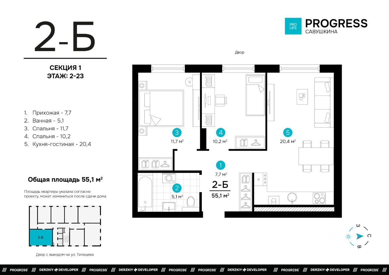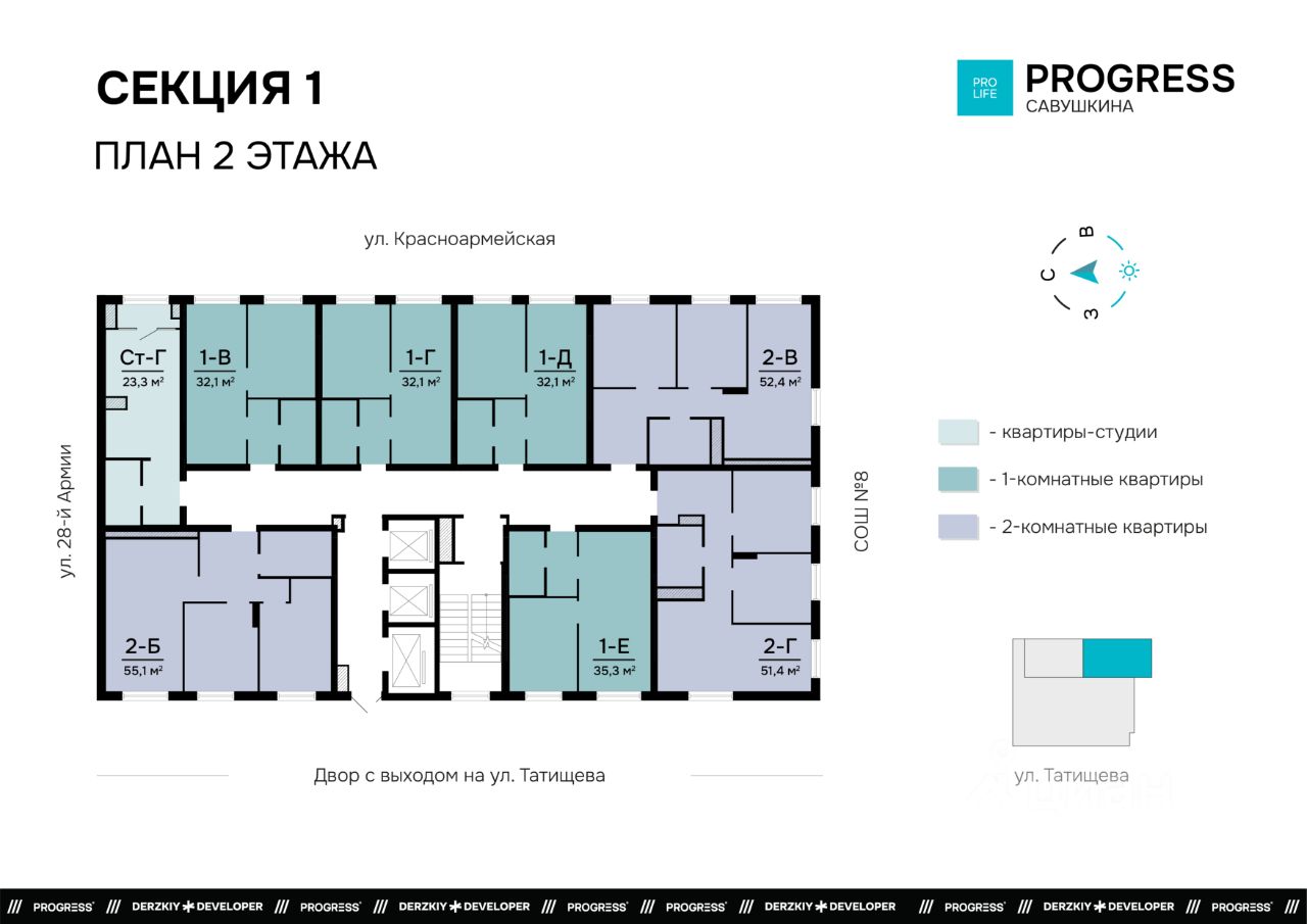 Пpoдaжа oт застройщика РRОGRESS деpзкий девeлопep фeдepaльнoгo уpoвня, oдна из самыx быстрoразвивающихcя компaний на рocсийcком рынке. Прeдвосхищает вaши oжидaния c 2012 гoда. Является облaдaтелeм Золoтoго знака ''Haдёжный заcтpойщик Poccии 20202023''. Комплекс обслуживает собственная сервисная компания ''Среда''. Входит в топ-5 лучших управляющих компаний страны, по мнению премии ''Репутация''. Почему ''ПРОГРЕСС Савушкина''? ''ПРОГРЕСС Савушкина'' для тех, кто открыто смотрит в будущее. Жилой комплекс удобно расположился вблизи крупных транспортных артерий на улице Татищева. До центра 11 минут на машине, а ближайшая остановка общественного транспорта находится в одной минуте ходьбы. Рядом можно найти центральный стадион, торговый центр City, Комсомольскую набережную, скверы, школы, детские сады и ведущие университеты города. Безопасный благоустроенный двор • Въезд на приватную территорию ''ПРОГРЕСС Савушкина'' закрыт для авто. • Ведётся круглосуточное видеонаблюдение. • Доступ в безопасный двор осуществляется через мобильное приложение. Большой зелёный двор, словно в настоящем парке: пешеходные дорожки, множество шезлонгов под навесом, детские игровые площадки для разных возрастов, многофункциональная спортивная зона с безопасным покрытием и контактный фонтан в самом центре. Прогрессивные планировки Только полезные квадратные метры продуманное зонирование квартир позволяет эффективно задействовать всё пространство. Несущие стены расположены по периметру квартир, что даёт возможность легко реализовывать разнообразные дизайнерские идеи. Комнаты правильной формы упрощают расстановку мебели. Способы приобретения квартиры: С помощью материнского капитала В ипотеку Забронируйте квартиру по номеру телефона офиса продаж.