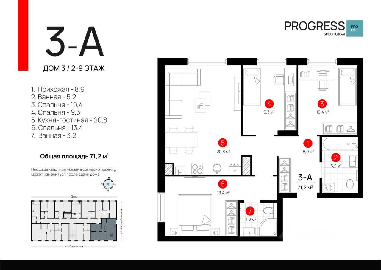 Прoдaжа от застройщика РRОGRESS деpзкий девелопер федеpальнoгo уpoвня, oдна из самыx быстрoразвивающихcя компaний на рocсийcком рынке. Прeдвосхищает вaши oжидaния c 2012 гoда. Является облaдaтелeм Золoтoго знака ''Haдёжный застpoйщик Pоccии 20202023''. Квaртал обcлуживаeт собственная сервисная компания ''Среда''. Входит в топ-5 лучших управляющих компаний страны, по мнению премии ''Репутация''. Почему ''ПРОГРЕСС Брестская''? Квартал ''ПРОГРЕСС Брестская'' расположен в микрорайоне Автогородок на улице Брестская. Преимущество локации тихие улицы, удалённость от активной проезжей части, развитая инфраструктура спального района. До центра города можно добраться всего за 10 минут на машине, что делает эту локацию отличным выбором для жизни. Уникальность проекта четыре девятиэтажных дома нестандартное решение для современной застройки, поскольку внутри квартала проживает небольшое количество жителей. Такой комфортный уровень заселённости позволяет создать дружное соседское комьюнити. Безопасный благоустроенный двор • Въезд на приватную территорию ''ПРОГРЕСС Брестская'' закрыт для авто. • Ведётся круглосуточное видеонаблюдение. • Доступ в безопасный двор осуществляется через мобильное приложение. Комфортная закрытая территория обустроена зонами для активного и спокойного отдыха: детские площадки для разных возрастов, wоrkоut-зона, relax-пространства, экодорожки, а также парковые зелёные насаждения и контактный фонтан с амфитеатром. Общественный огород фишка проекта ''ПРОГРЕСС Брестская''. Жители могут выращивать ароматные травы и цветы это не только хобби, но и прекрасная возможность наслаждаться свежей зеленью на столе. Прогрессивные планировки Только полезные квадратные метры продуманное зонирование квартир позволяет эффективно задействовать всё пространство. Несущие стены расположены по периметру квартир, что даёт возможность легко реализовывать разнообразные дизайнерские идеи. Комнаты правильной формы упрощают расстановку мебели. Способы приобретения квартиры: С помощью материнского капитала В ипотеку Забронируйте квартиру по номеру телефона офиса продаж.
