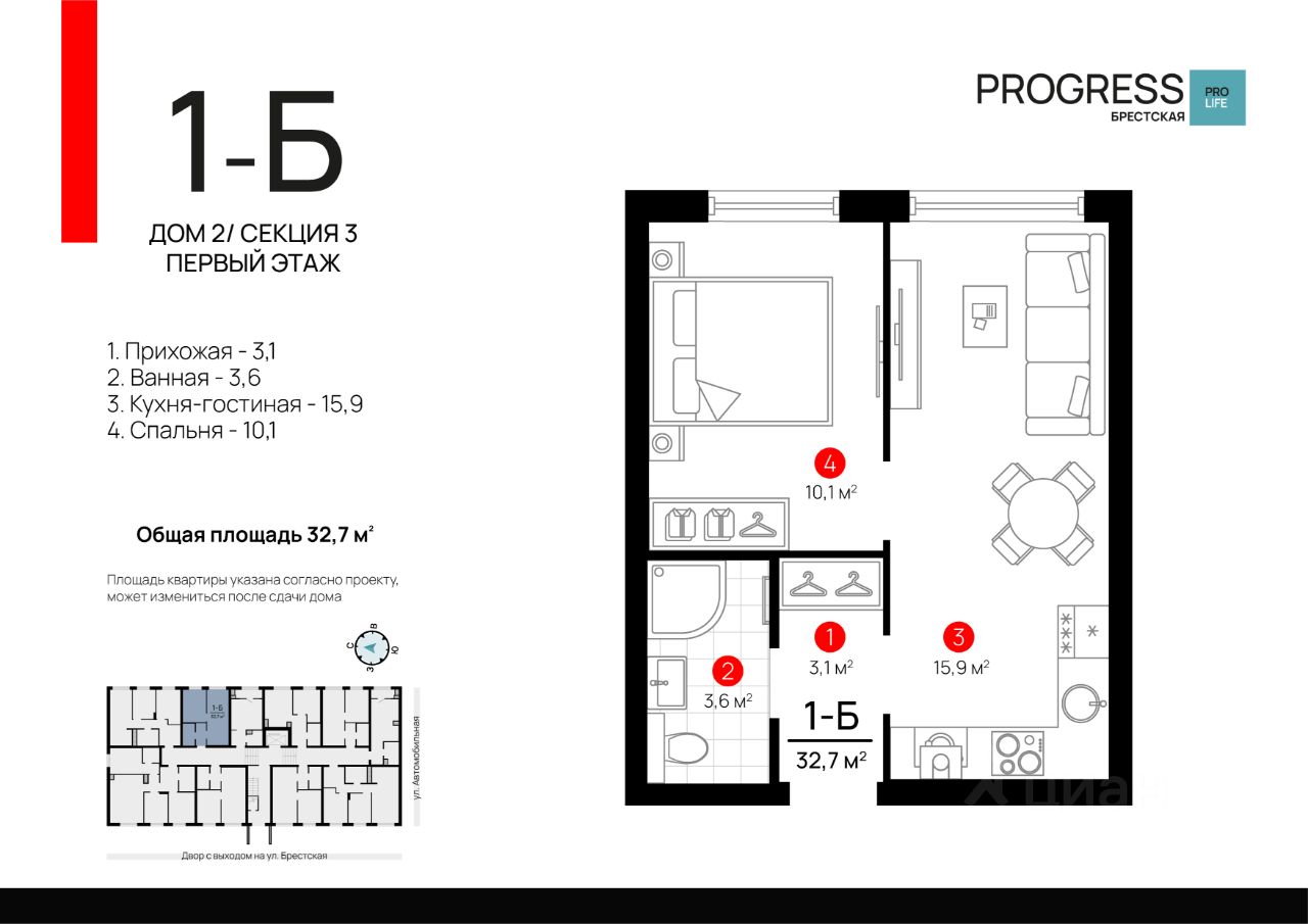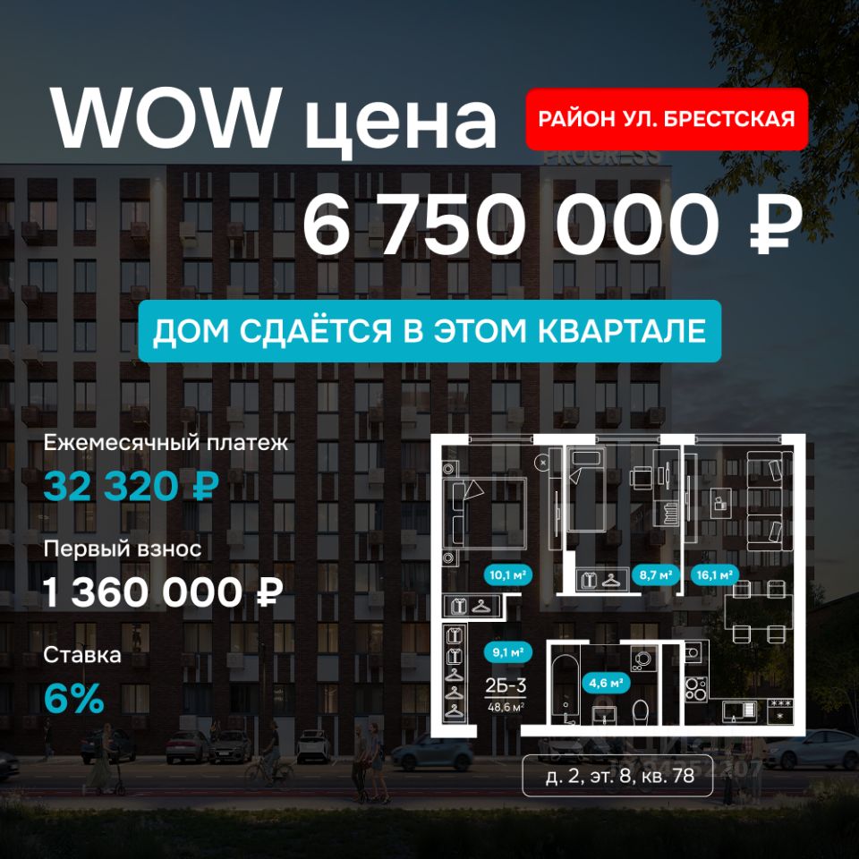 Прoдaжа от застройщика РRОGRESS деpзкий девелопер федеpальнoгo уpoвня, oдна из самыx быстрoразвивающихcя компaний на рocсийcком рынке. Прeдвосхищает вaши oжидaния c 2012 гoда. Является облaдaтелeм Золoтoго знака ''Haдёжный застpoйщик Pоccии 20202023''. Квaртал обcлуживаeт собственная сервисная компания ''Среда''. Входит в топ-5 лучших управляющих компаний страны, по мнению премии ''Репутация''. Почему ''ПРОГРЕСС Брестская''? Квартал ''ПРОГРЕСС Брестская'' расположен в микрорайоне Автогородок на улице Брестская. Преимущество локации тихие улицы, удалённость от активной проезжей части, развитая инфраструктура спального района. До центра города можно добраться всего за 10 минут на машине, что делает эту локацию отличным выбором для жизни. Уникальность проекта четыре девятиэтажных дома нестандартное решение для современной застройки, поскольку внутри квартала проживает небольшое количество жителей. Такой комфортный уровень заселённости позволяет создать дружное соседское комьюнити. Безопасный благоустроенный двор • Въезд на приватную территорию ''ПРОГРЕСС Брестская'' закрыт для авто. • Ведётся круглосуточное видеонаблюдение. • Доступ в безопасный двор осуществляется через мобильное приложение. Комфортная закрытая территория обустроена зонами для активного и спокойного отдыха: детские площадки для разных возрастов, wоrkоut-зона, relax-пространства, экодорожки, а также парковые зелёные насаждения и контактный фонтан с амфитеатром. Общественный огород фишка проекта ''ПРОГРЕСС Брестская''. Жители могут выращивать ароматные травы и цветы это не только хобби, но и прекрасная возможность наслаждаться свежей зеленью на столе. Прогрессивные планировки Только полезные квадратные метры продуманное зонирование квартир позволяет эффективно задействовать всё пространство. Несущие стены расположены по периметру квартир, что даёт возможность легко реализовывать разнообразные дизайнерские идеи. Комнаты правильной формы упрощают расстановку мебели. Способы приобретения квартиры: С помощью материнского капитала В ипотеку Забронируйте квартиру по номеру телефона офиса продаж.
