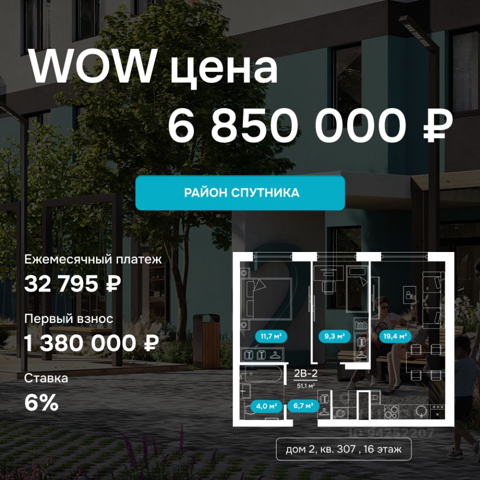 51 м² · Этаж 16 из 24