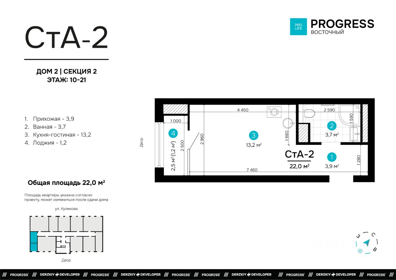 22 м² · Этаж 21 из 22