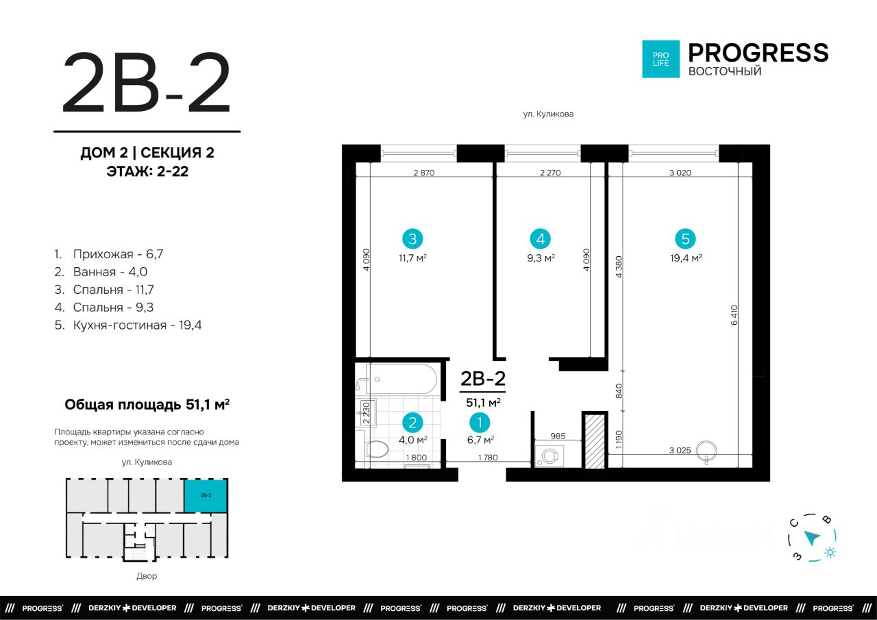 51 м² · Этаж 18 из 22