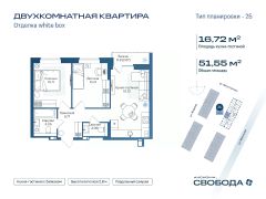 Продаётся 2-комнатная квартира в строящемся доме (Дом 1), срок сдачи: I-кв. 2029, общей площадью 51.55 кв.м., на 6 этаже. Новый жилой комплекс ''Аксиома. Свобода плюс'' от застройщика ''Аксиома'' расположен по адресу: Россия, Астрахань, Августовская улица