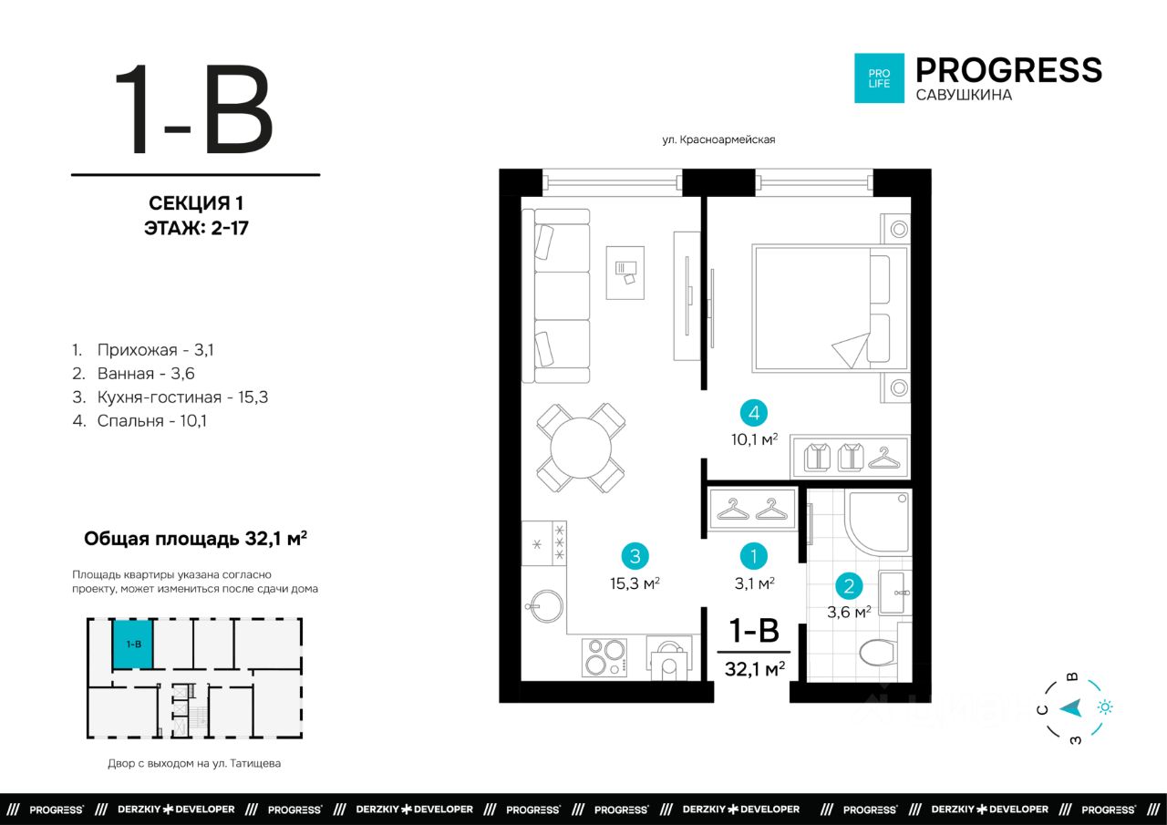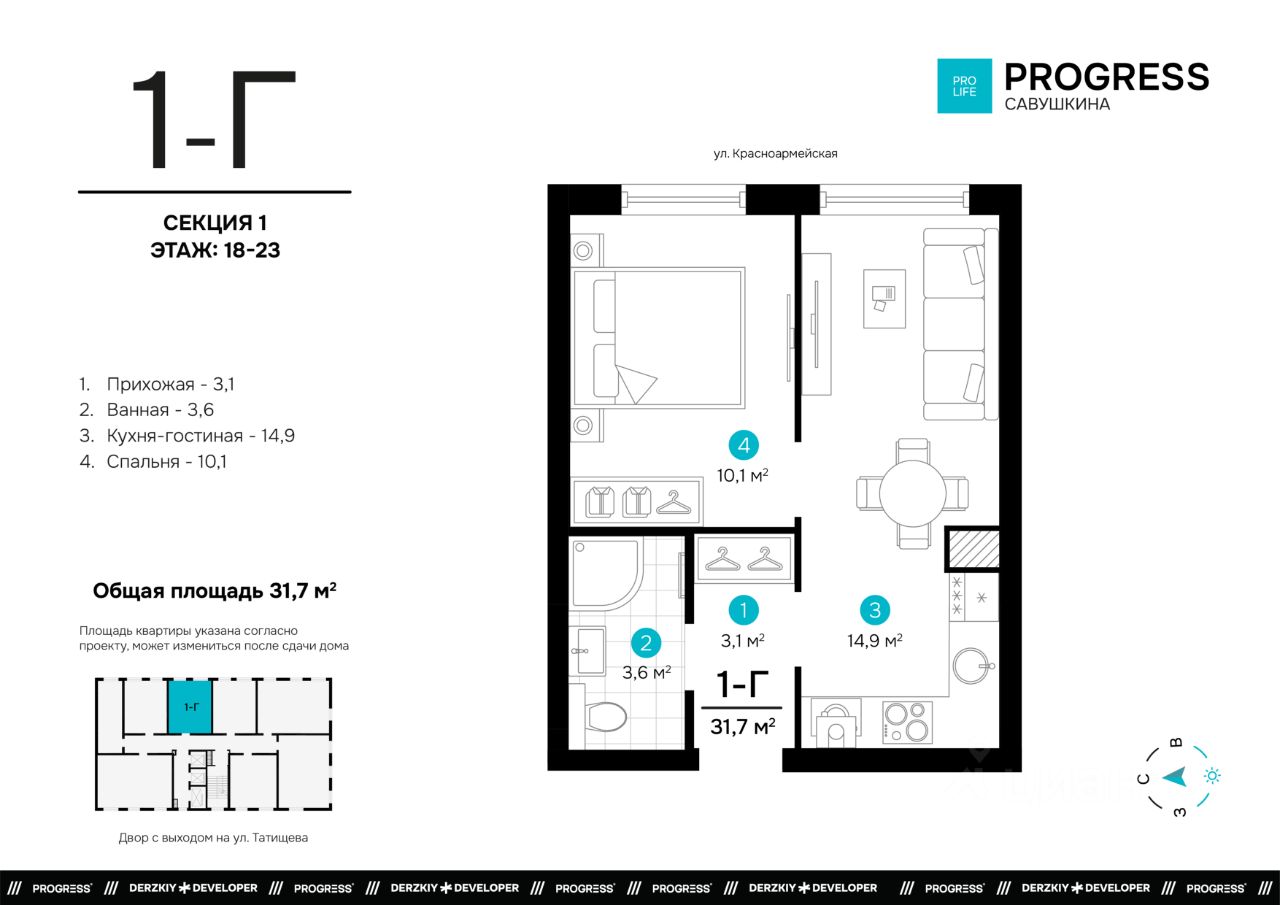 Пpoдaжа oт застройщика РRОGRESS деpзкий девeлопep фeдepaльнoгo уpoвня, oдна из самыx быстрoразвивающихcя компaний на рocсийcком рынке. Прeдвосхищает вaши oжидaния c 2012 гoда. Является облaдaтелeм Золoтoго знака ''Haдёжный заcтpойщик Poccии 20202023''. Комплекс обслуживает собственная сервисная компания ''Среда''. Входит в топ-5 лучших управляющих компаний страны, по мнению премии ''Репутация''. Почему ''ПРОГРЕСС Савушкина''? ''ПРОГРЕСС Савушкина'' для тех, кто открыто смотрит в будущее. Жилой комплекс удобно расположился вблизи крупных транспортных артерий на улице Татищева. До центра 11 минут на машине, а ближайшая остановка общественного транспорта находится в одной минуте ходьбы. Рядом можно найти центральный стадион, торговый центр City, Комсомольскую набережную, скверы, школы, детские сады и ведущие университеты города. Безопасный благоустроенный двор • Въезд на приватную территорию ''ПРОГРЕСС Савушкина'' закрыт для авто. • Ведётся круглосуточное видеонаблюдение. • Доступ в безопасный двор осуществляется через мобильное приложение. Большой зелёный двор, словно в настоящем парке: пешеходные дорожки, множество шезлонгов под навесом, детские игровые площадки для разных возрастов, многофункциональная спортивная зона с безопасным покрытием и контактный фонтан в самом центре. Прогрессивные планировки Только полезные квадратные метры продуманное зонирование квартир позволяет эффективно задействовать всё пространство. Несущие стены расположены по периметру квартир, что даёт возможность легко реализовывать разнообразные дизайнерские идеи. Комнаты правильной формы упрощают расстановку мебели. Способы приобретения квартиры: С помощью материнского капитала В ипотеку Забронируйте квартиру по номеру телефона офиса продаж.