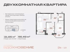 Продаётся 2-комнатная квартира в строящемся доме (Дом 50А), срок сдачи: IV-кв. 2027, общей площадью 56.49 кв.м., на 13 этаже. Новый жилой комплекс ''Аксиома.Вдохновение'' от застройщика ''Аксиома'' расположен по адресу: Астрахань, ул., Боевая, 50А