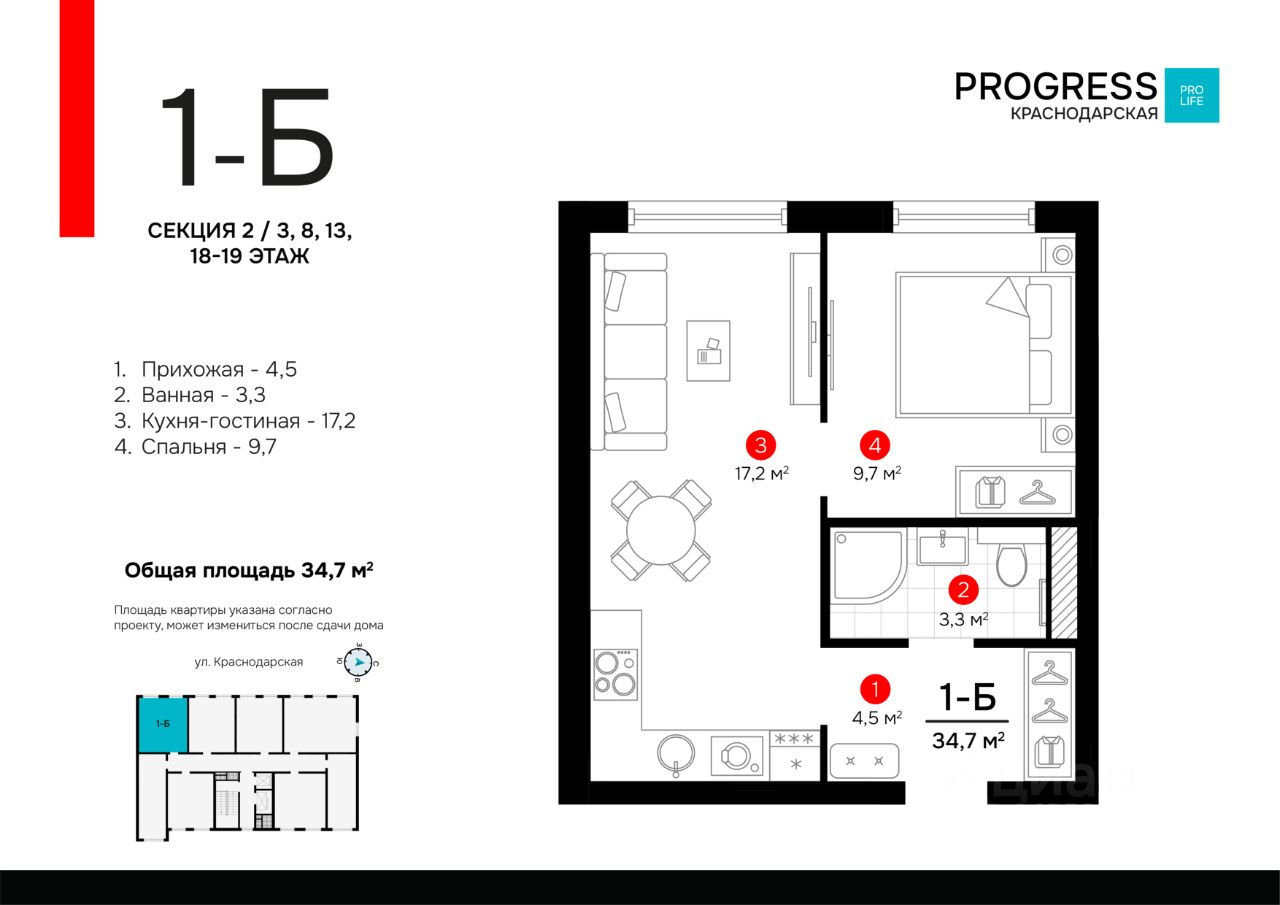 Продаётся 1-комнатная квартира в строящемся доме (Дом 1), срок сдачи: I-кв. 2028, общей площадью 34.7 кв.м., на 13 этаже. Новый жилой комплекс ''Точка'' от застройщика ''Будущее'' расположен по адресу: г. Астрахань, ул. Краснодарской, 43а