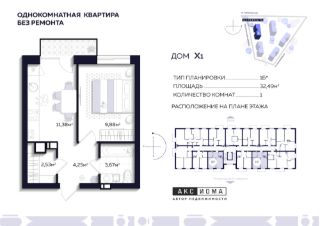Продаётся 1-комнатная квартира в строящемся доме (Дом 1), срок сдачи: IV-кв. 2025, общей площадью 32.49 кв.м., на 2 этаже. Аксиома на Тихореченской Место, где время замедляется, чтобы вы могли насладиться жизнью, вдали от городской суеты. Современный комфорт, объединенный с природой, дополненный североевропейской эклектикой делает этот проект настоящим местом силы! Местом, где хочется жить, творить, любить!