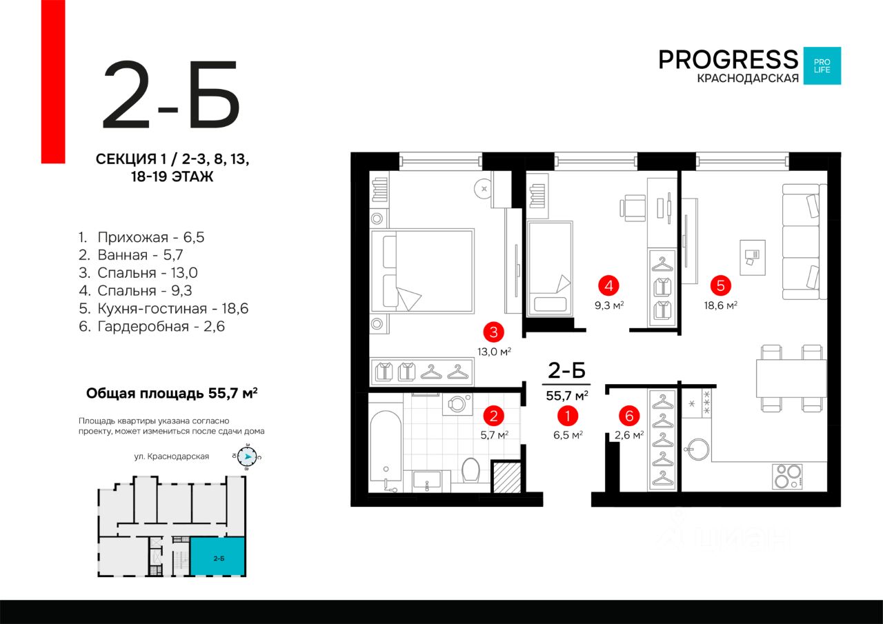 Продаётся 2-комнатная квартира в строящемся доме (Дом 1), срок сдачи: I-кв. 2028, общей площадью 55.73 кв.м., на 2 этаже. Новый жилой комплекс ''Точка'' от застройщика ''Будущее'' расположен по адресу: г. Астрахань, ул. Краснодарской, 43а