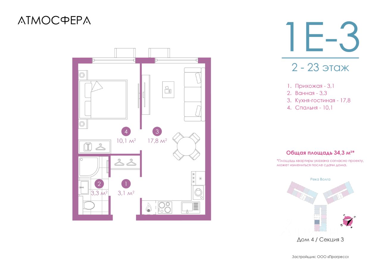 Продажа от застройщика PROGRESS — дерзкий девелопер федерального уровня, одна из самых быстроразвивающихся компаний на российском рынке. Предвосхищает ваши ожидания с 2012 года. Каждый проект PROGRESS оригинален, отличается дизайном, архитектурой и ландшафтными решениями. Является обладателем Золотого знака ''Надёжный застройщик России — 20202023''. Комплекс обслуживает собственная сервисная компания ''Среда''. Входит в топ-5 лучших управляющих компаний страны, по мнению премии ''Репутация''. Живи в Атмосфере Жилой комплекс ''Атмосфера'' — уникальный проект линейки PRO MAX. Многоуровневая закрытая дворовая территория, авторская концепция холлов, сервис на уровне пятизвёздочного отеля. Уединённая локация между двумя водными пространствами — рекой Волгой и Приволжским затоном. На безопасной приватной дворовой территории ведётся круглосуточное видеонаблюдение. Для самых маленьких здесь оборудован детский игровой центр — кидс клаб, а для взрослых — премиальная кофейня с чарующим видом на Волгу. ''Атмосфера'' выводит понятие ''комфорт'' на совершенно иной уровень. Каждая деталь говорит о стремлении к совершенству. ''Атмосфера'' в цифрах: 4 дома с собственной уникальной и интерактивной дворовой территорией прямо на берегу реки Волги 1 приватный двор размером с городской парк 7 спортивных площадок 6 пространств для отдыха 5 детских площадок, включающих в себя интерактивный ручеёк и автодром 10 минут от исторической части города Почувствуй роскошный сервис • Собственная сервисная компания ''Среда'' поможет не беспокоиться о бытовых проблемах. • Персональное мобильное приложение ''Среда'', в котором можно просматривать новости и объявления, оплачивать коммунальные счета, получить доступ во двор и к камерам видеонаблюдения. • Консьерж-сервис. • Бесплатный wi-fi на всей территории комплекса. Квартира с предчистовой отделкой включает в себя: — Межквартирные стены, выровненные по маякам. — Межкомнатные стены из гипсовых пазогребневых плит, не требующие дополнительного выравнивания. — Откосы входной двери и оконных проёмов, реализованные и подготовленные к финишной отделке. — Напольное покрытие без стяжки. — Электрическая проводка по потолку. — Подводка инженерных коммуникаций к местам установки сантехнических приборов. Способы приобретения квартиры: С помощью материнского капитала В ипотеку Забронируйте квартиру по номеру телефона офиса продаж. Выведи свою жизнь на новый уровень. Живи в Атмосфере.