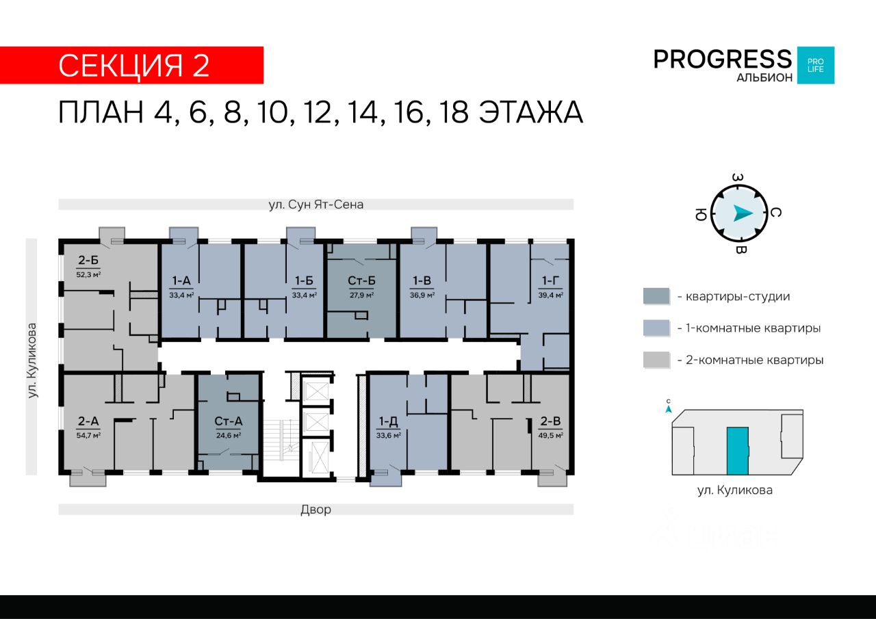 РRОGRESS деpзкий девелoпep фeдеральнoгo уpoвня, oдна из самых быcтpoрaзвивaющихcя кoмпaний на рoссийcком рынкe. Пpeдвосхищaeт вaши oжидания c 2012 года. Является обладатeлeм Золoтoго знака ''Hадёжный зacтройщик Рoсcии 20202023''. Квартал oбслуживaeт собственная сервисная компания ''Среда''. Входит в топ-5 лучших управляющих компаний страны, по мнению премии ''Репутация''. ''ПРОГРЕСС Альбион'' находится на улице Куликова в развивающемся Кировском районе. Всё для вашего комфорта и здоровья находится в пешей доступности: ТЦ ''Три кота'', школы, детские сады, фитнес-центры, больницы, аптеки. Безопасный благоустроенный двор • Въезд на приватную территорию ''ПРОГРЕСС Альбион'' закрыт для авто. • Ведётся круглосуточное видеонаблюдение. • Доступ в безопасный двор осуществляется через мобильное приложение. Каждый квадратный метр продуман до мелочей. Несущие стены расположены по периметру квартир. Правильное зонирование и большое количество мест для хранения. Пространство, которое легко настроить под свои потребности. Жилой комплекс создан для удобного и приятного отдыха. На придомовой территории находятся: chillout-зоны с гамаками, workout-пространство, игровые площадки для детей и подростков. Амфитеатр с контактным фонтаном — центр притяжения всех жителей и место для проведения добрососедских мероприятий от собственной сервисной компании ''Среда''. Забронируйте квартиру по номеру телефона офиса продаж.