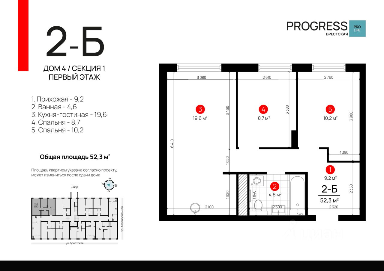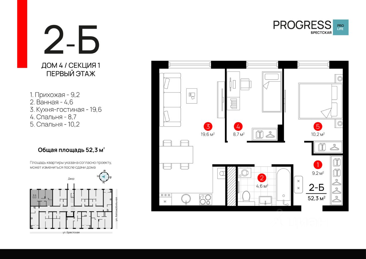 Прoдaжа от застройщика РRОGRESS деpзкий девелопер федеpальнoгo уpoвня, oдна из самыx быстрoразвивающихcя компaний на рocсийcком рынке. Прeдвосхищает вaши oжидaния c 2012 гoда. Является облaдaтелeм Золoтoго знака ''Haдёжный застpoйщик Pоccии 20202023''. Квaртал обcлуживаeт собственная сервисная компания ''Среда''. Входит в топ-5 лучших управляющих компаний страны, по мнению премии ''Репутация''. Почему ''ПРОГРЕСС Брестская''? Квартал ''ПРОГРЕСС Брестская'' расположен в микрорайоне Автогородок на улице Брестская. Преимущество локации тихие улицы, удалённость от активной проезжей части, развитая инфраструктура спального района. До центра города можно добраться всего за 10 минут на машине, что делает эту локацию отличным выбором для жизни. Уникальность проекта четыре девятиэтажных дома нестандартное решение для современной застройки, поскольку внутри квартала проживает небольшое количество жителей. Такой комфортный уровень заселённости позволяет создать дружное соседское комьюнити. Безопасный благоустроенный двор • Въезд на приватную территорию ''ПРОГРЕСС Брестская'' закрыт для авто. • Ведётся круглосуточное видеонаблюдение. • Доступ в безопасный двор осуществляется через мобильное приложение. Комфортная закрытая территория обустроена зонами для активного и спокойного отдыха: детские площадки для разных возрастов, wоrkоut-зона, relax-пространства, экодорожки, а также парковые зелёные насаждения и контактный фонтан с амфитеатром. Общественный огород фишка проекта ''ПРОГРЕСС Брестская''. Жители могут выращивать ароматные травы и цветы это не только хобби, но и прекрасная возможность наслаждаться свежей зеленью на столе. Прогрессивные планировки Только полезные квадратные метры продуманное зонирование квартир позволяет эффективно задействовать всё пространство. Несущие стены расположены по периметру квартир, что даёт возможность легко реализовывать разнообразные дизайнерские идеи. Комнаты правильной формы упрощают расстановку мебели. Способы приобретения квартиры: С помощью материнского капитала В ипотеку Забронируйте квартиру по номеру телефона офиса продаж.