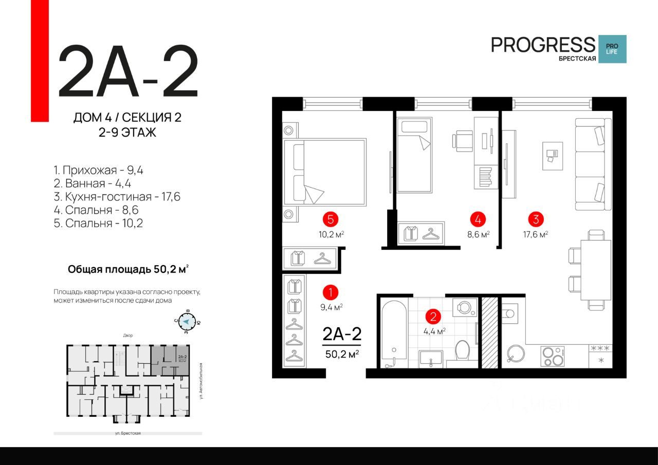 52 м² · Этаж 2 из 9