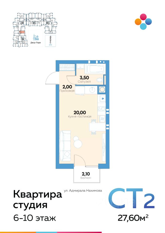 продам 1-к, Адмирала Нахимова, 141б4 961 857 ₽