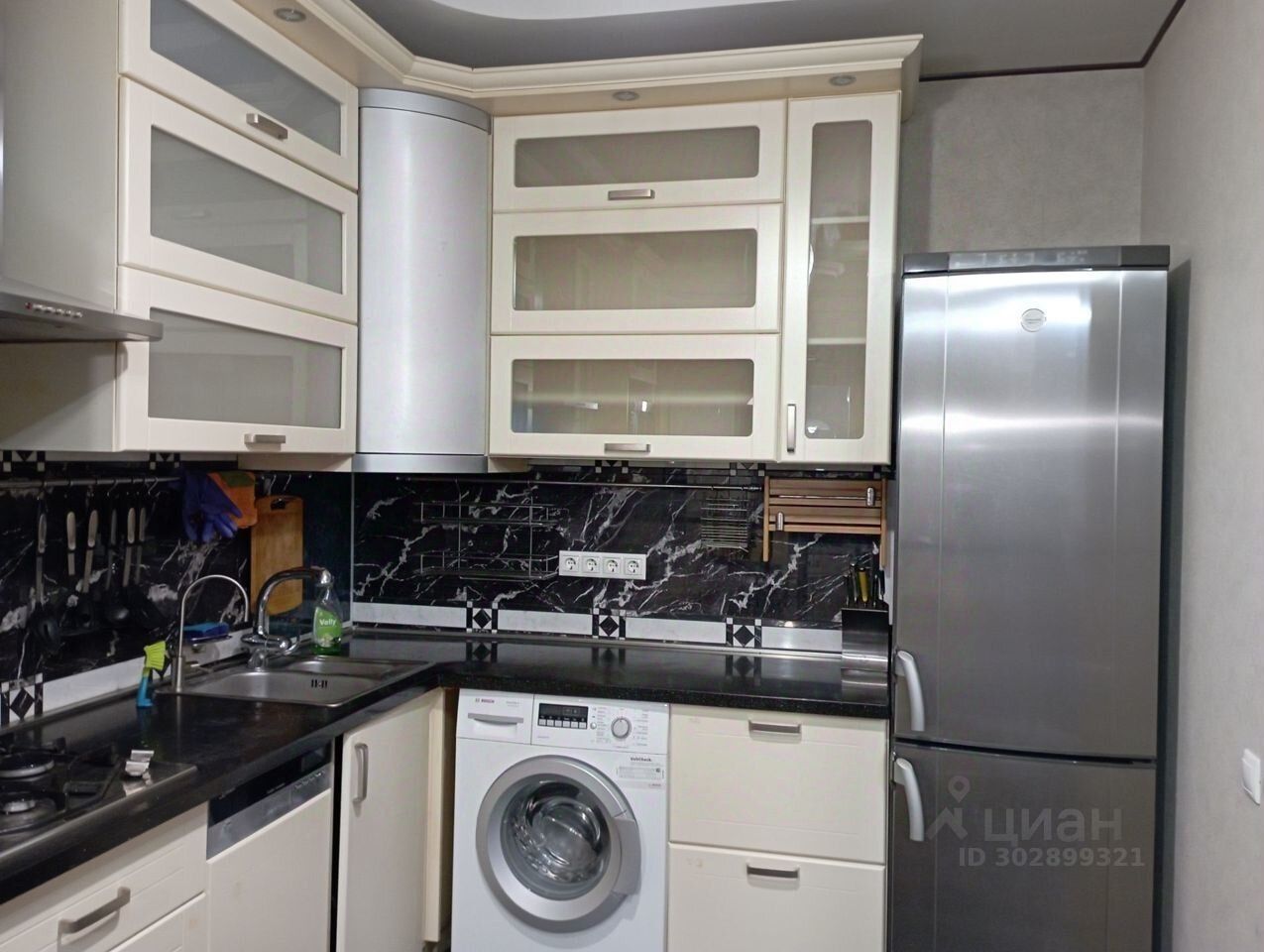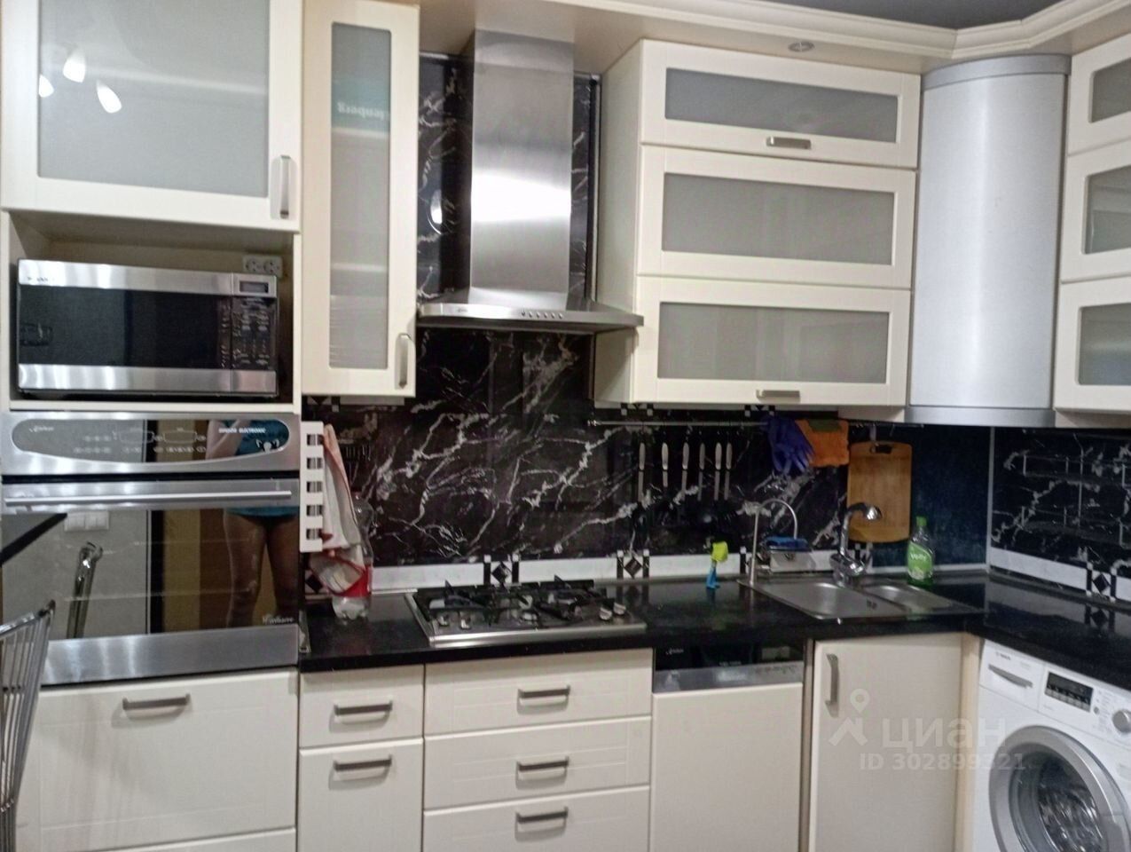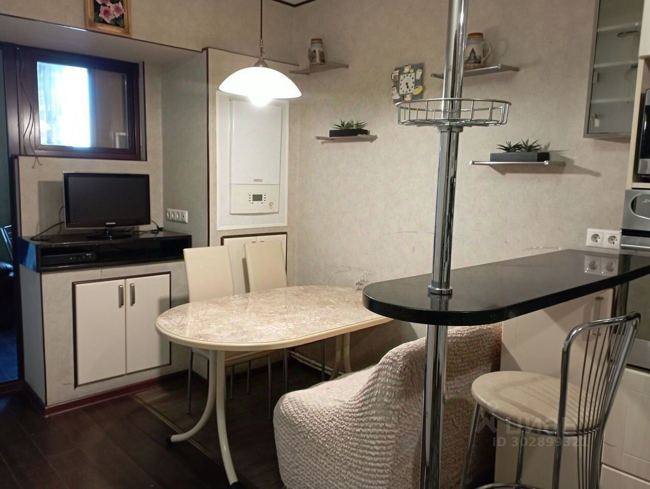 Квартира укомплектована мебелью и техникой.