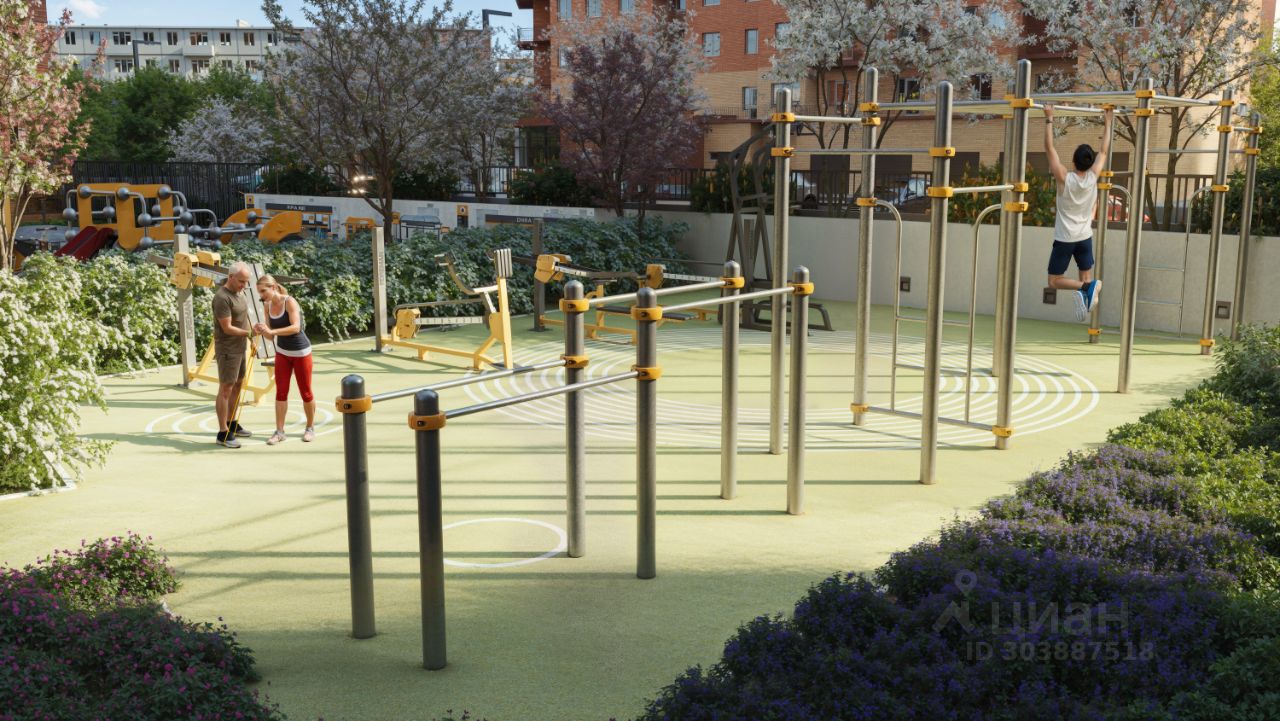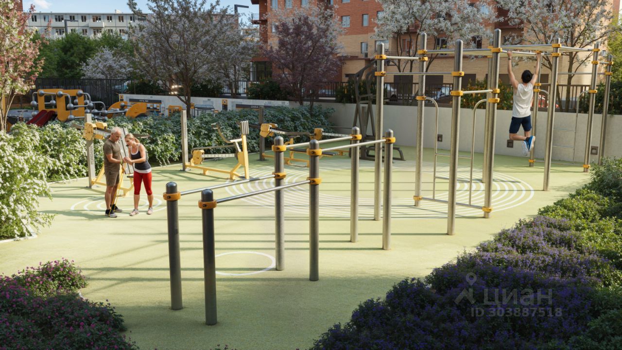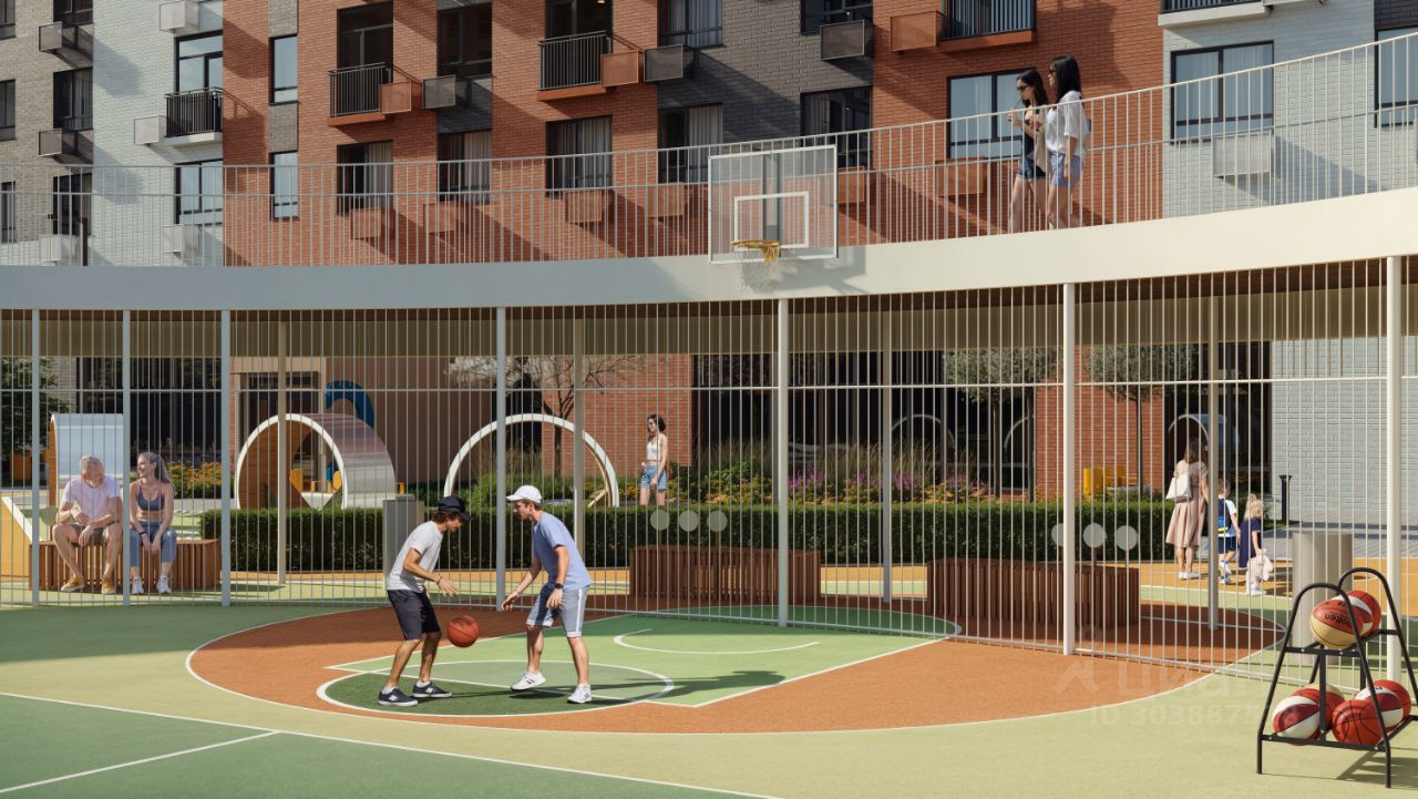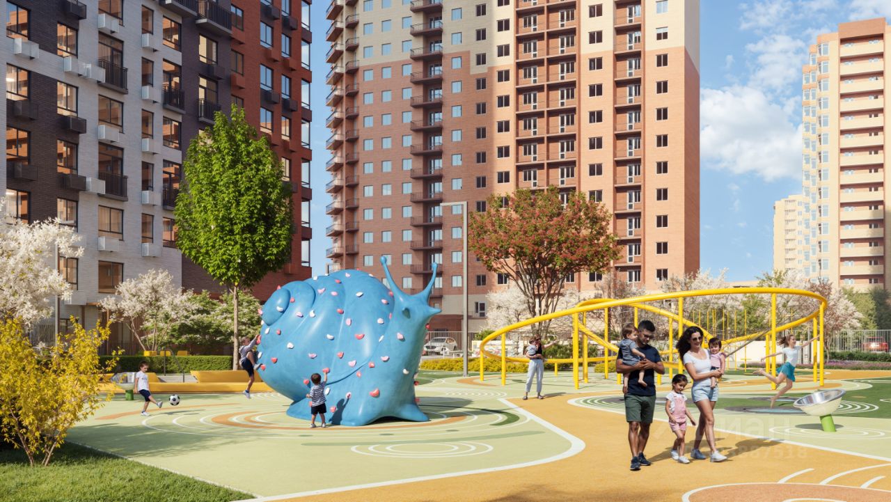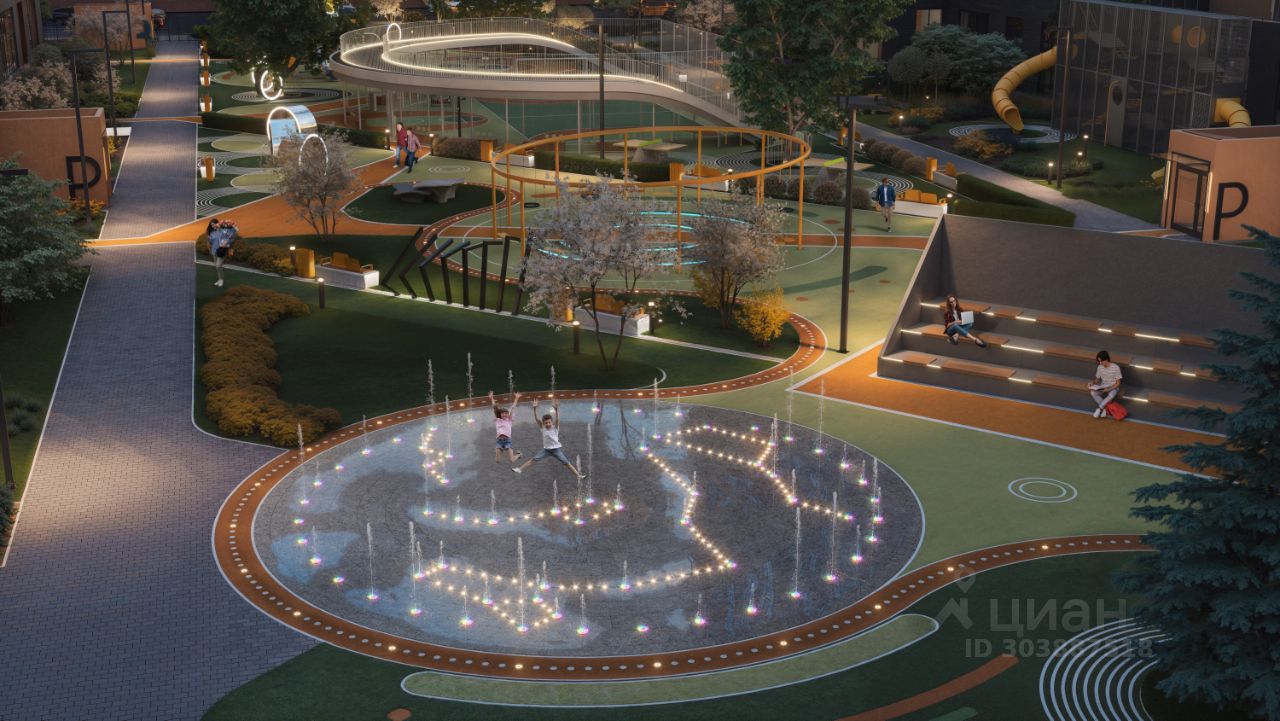 Благоустроенный двор-парк площадью 10 000 кв.м.: • Игровые площадки для детей всех возрастов и летний кинотеатр. • Отсутствие машин во дворе для безопасности детей и взрослых. • Подземный паркинг и большая наружная парковка. • Зоны воркаута. • Фонтан, амфитеатр, лабиринт и автогородок. • Отдельно выделенный участок для выгула питомцев за пределами двора.