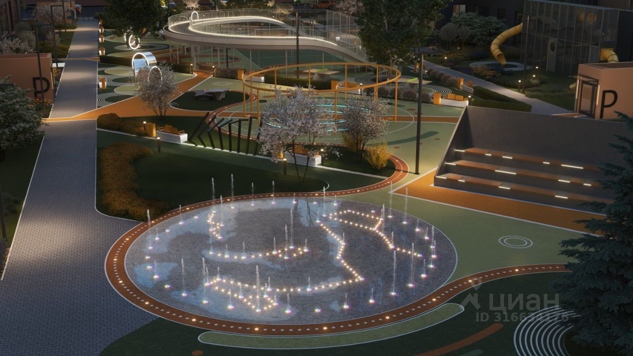 Благоустроенный двор-парк площадью 10 000 кв.м.: • Игровые площадки для детей всех возрастов и летний кинотеатр. • Отсутствие машин во дворе для безопасности детей и взрослых. • Подземный паркинг и большая наружная парковка. • Зоны воркаута. • Фонтан, амфитеатр, лабиринт и автогородок. • Отдельно выделенный участок для выгула питомцев за пределами двора.