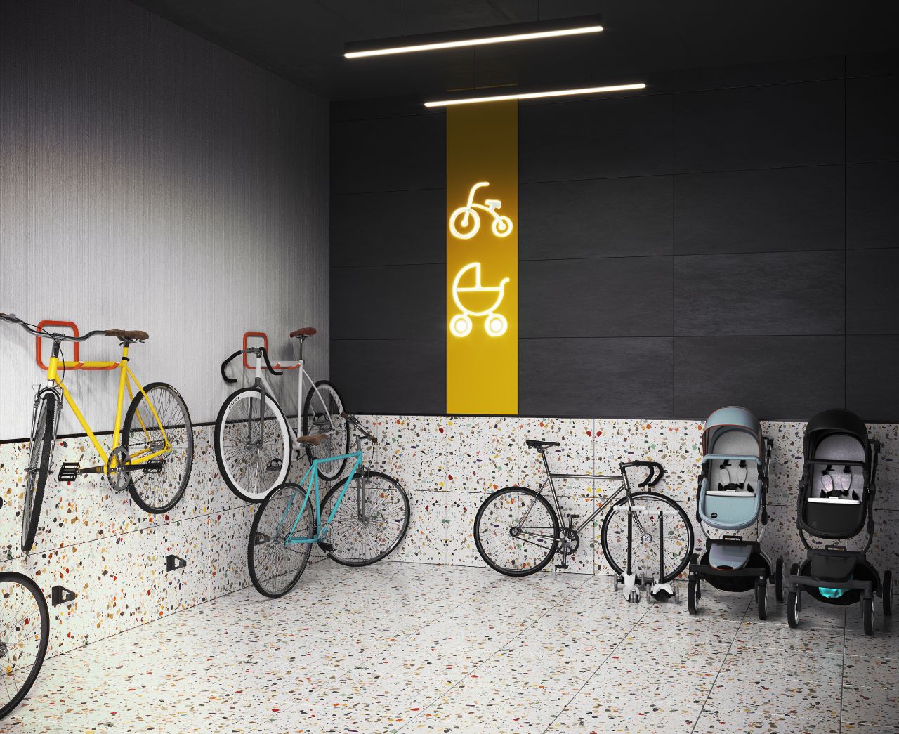 Но и это еще не всё: • Соседский центр позволит каждому проявить себя и почувствовать единение с теми, кто живет рядом. • Колясочные на каждом этаже с заботой о родителях. • Есть кладовые для тех, кто против захламления пространства в квартире. • 3 лифта, один из них грузовой чтобы не нужно было долго ждать.