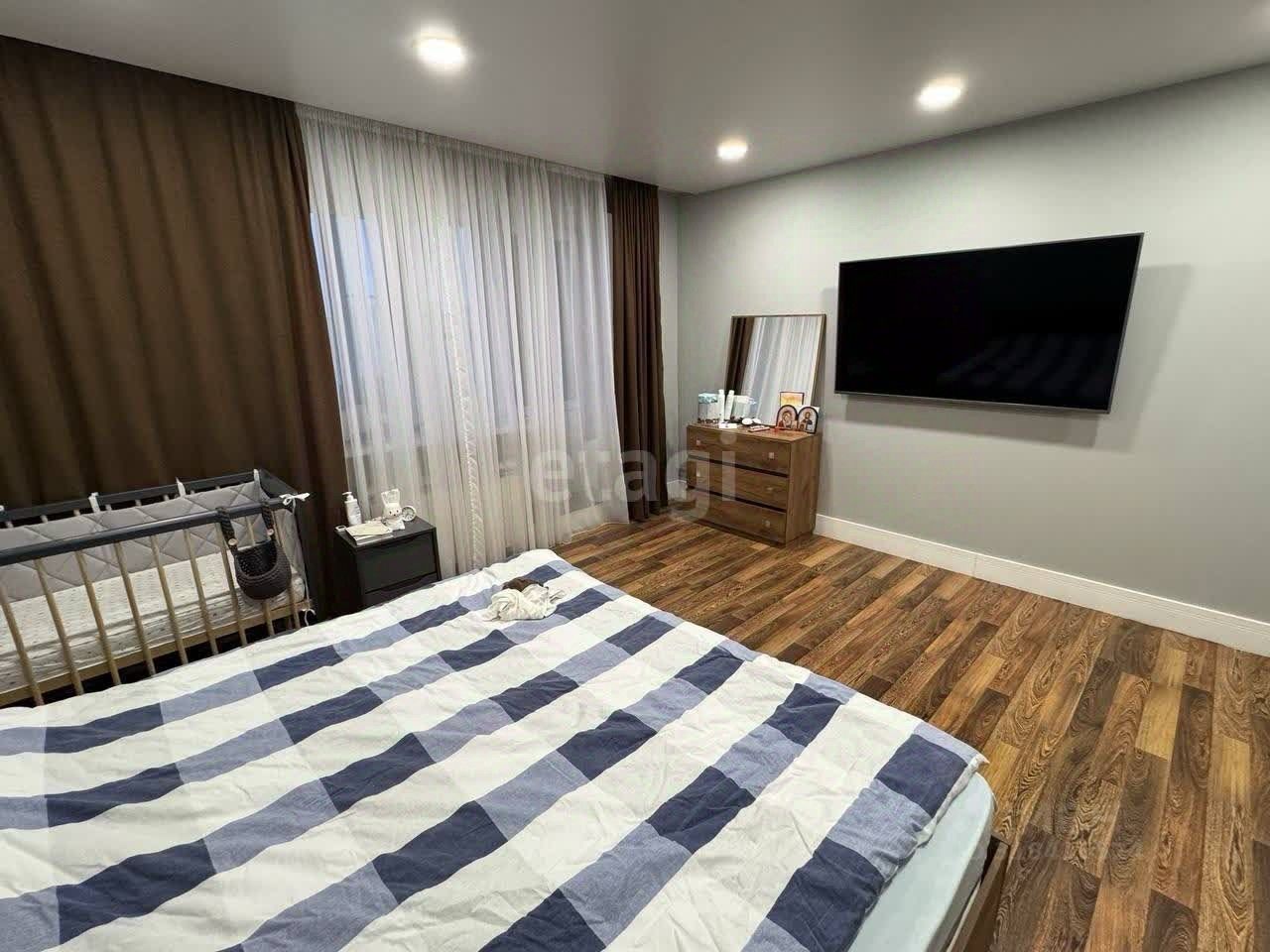 Планировка продумана для комфортного проживания: изолированные комнаты, включая просторный зал-гостиную, две спальни (одна с гардеробной), кабинет, совмещенный санузел с ванной и душевой кабиной, а также застекленный балкон.