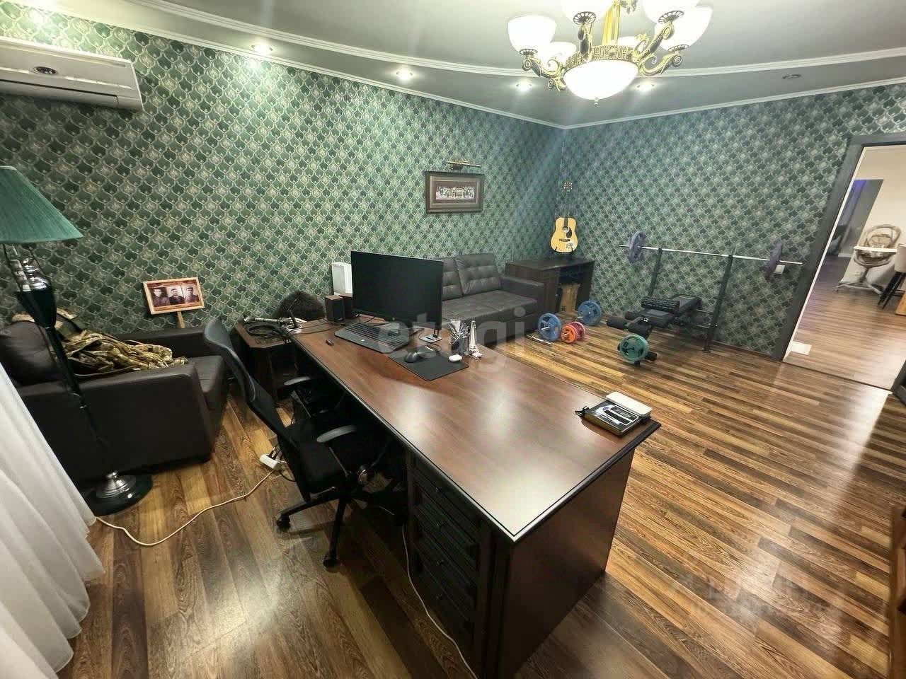 Планировка продумана для комфортного проживания: изолированные комнаты, включая просторный зал-гостиную, две спальни (одна с гардеробной), кабинет, совмещенный санузел с ванной и душевой кабиной, а также застекленный балкон. В квартире выполнен качественный дизайнерский ремонт, при продаже остается вся мебель и техника, включая встроенную кухню и четыре сплит-системы. Центральное отопление обеспечивает тепло даже в холодное время года.