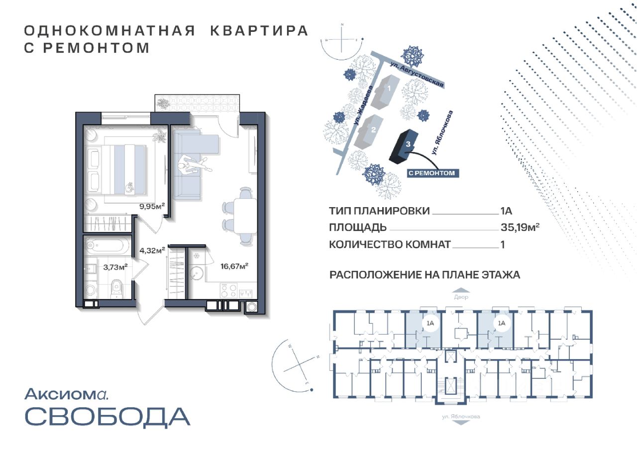 Продаётся 1-комнатная квартира в строящемся доме (Дом 3), срок сдачи: IV-кв. 2026, общей площадью 35.18 кв.м., на 8 этаже. Свобода духа, свобода выбора, свобода творчества! Место, где вы точно станете автором своей жизни!