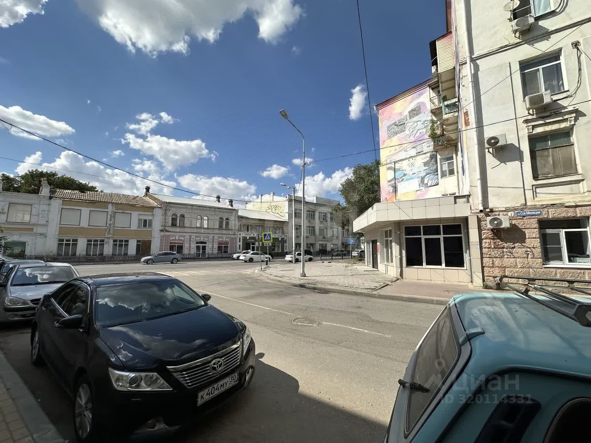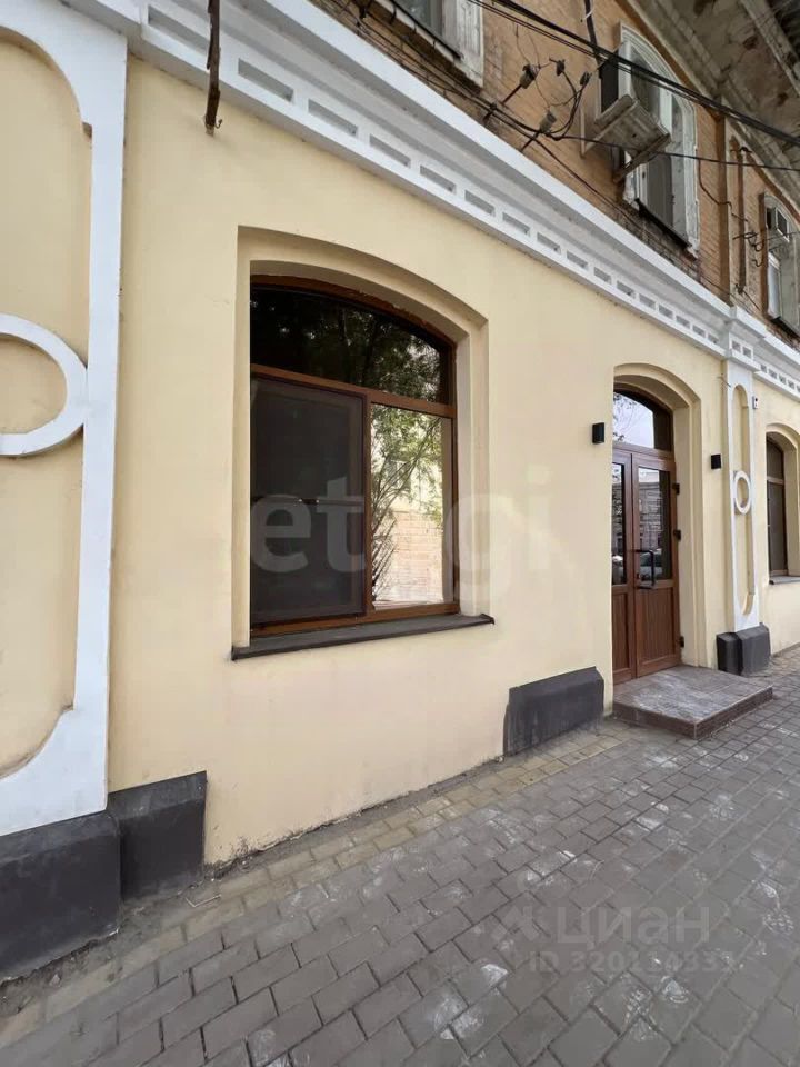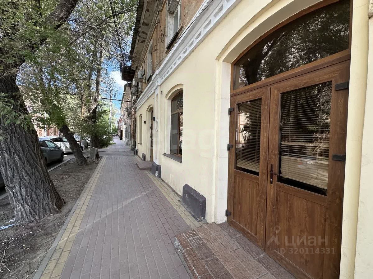 Коммерческое помещение площадью 74,5 м² расположено на первом этаже исторического здания в центре Астрахани, на улице Советской Милиции — одной из самых оживлённых в городе.