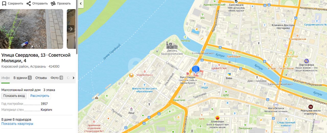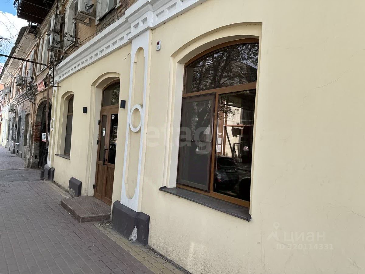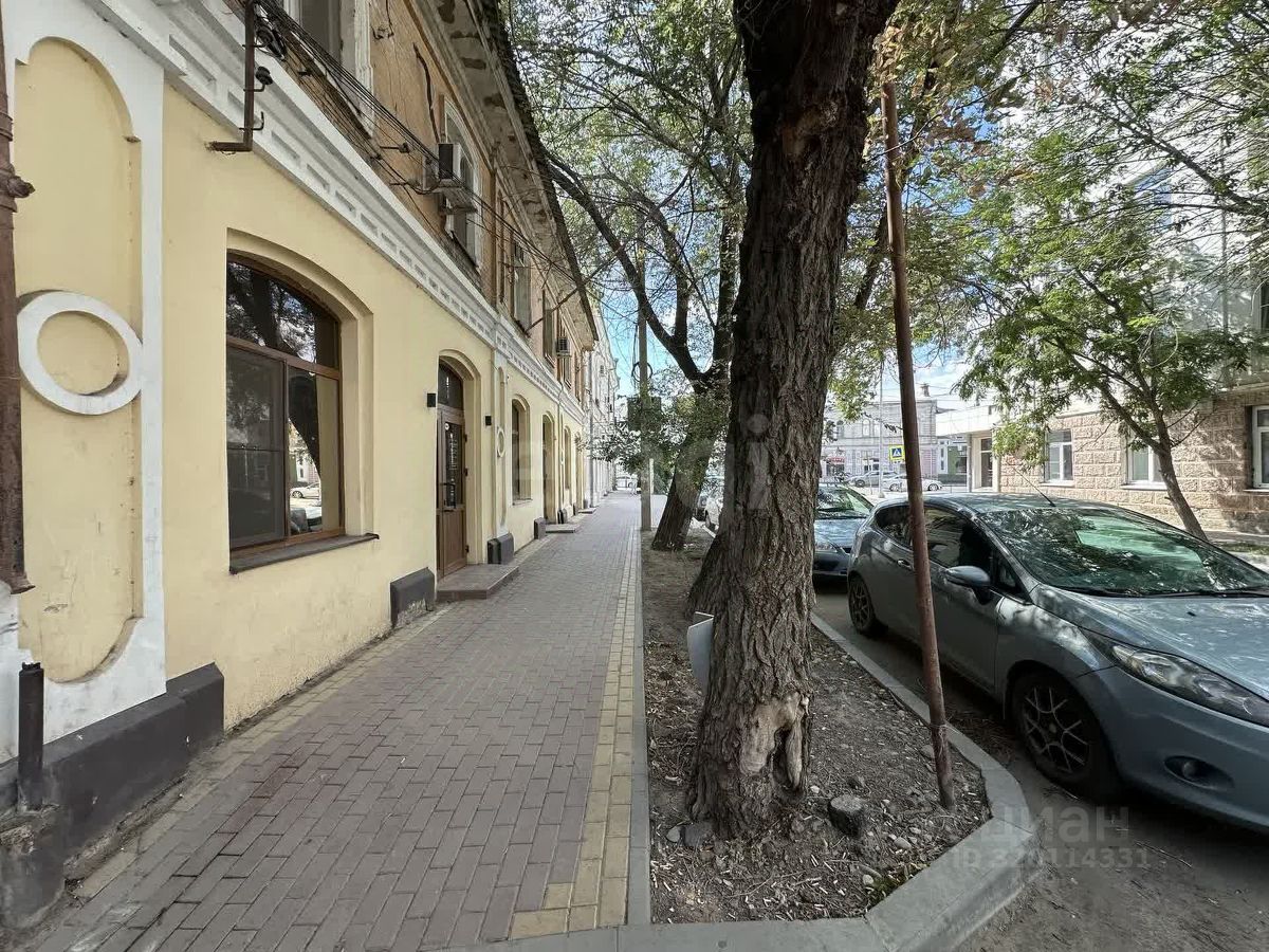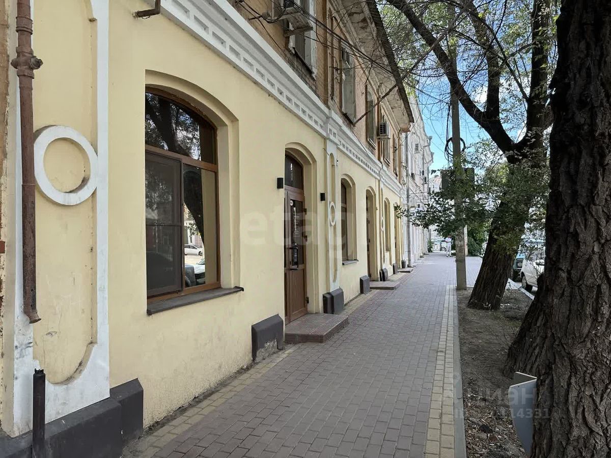 Коммерческое помещение площадью 74,5 м² расположено на первом этаже исторического здания в центре Астрахани, на улице Советской Милиции — одной из самых оживлённых в городе.