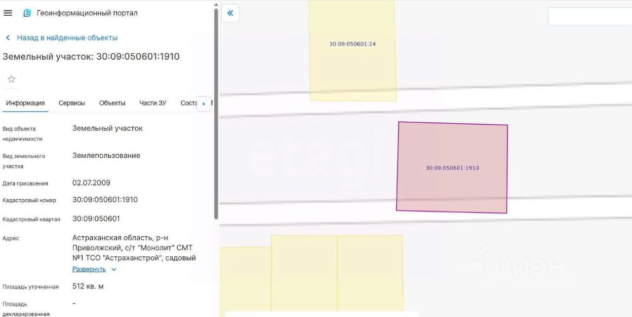 Участок площадью 512 м² расположен в СНТ ''Монолит'' в селе Началово Приволжского района Астраханской области.