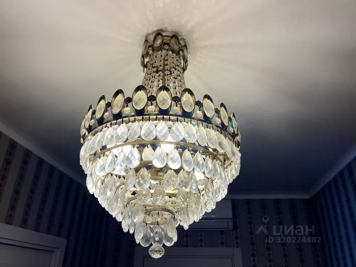 В доме остается часть мебели: кухонный гарнитур с варочной панелью, спальный гарнитур, шкаф, диван, а также все светильники, включая ретро-люстру.