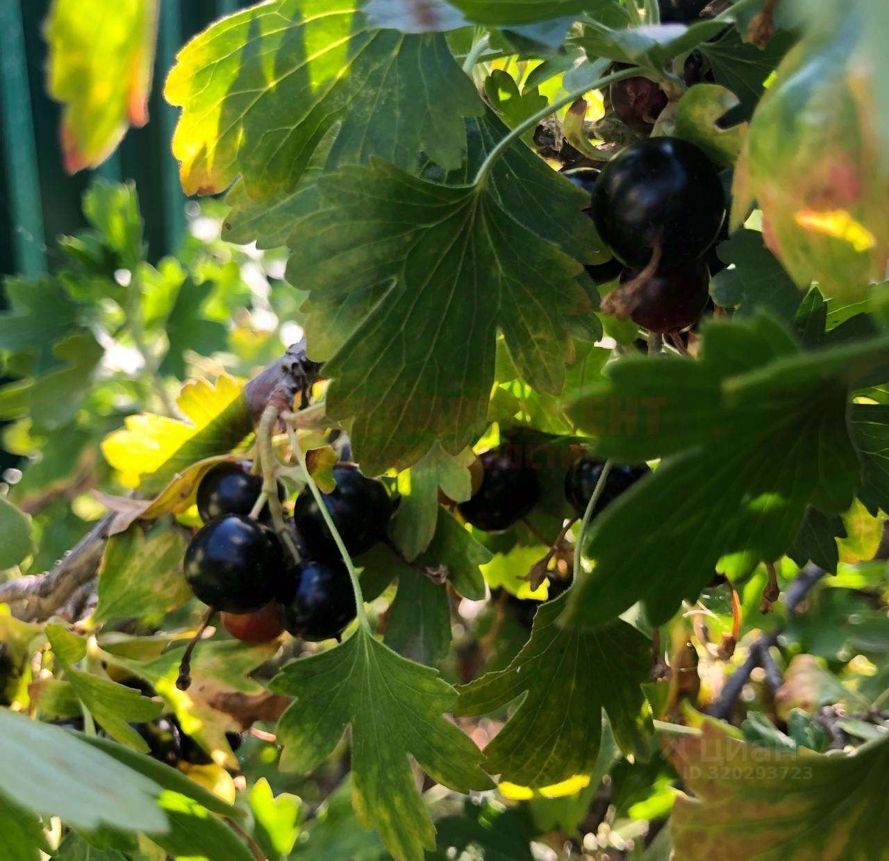 На участке плодовые деревья и кустарники.