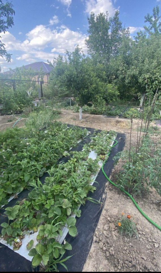Участок ухожен, на участке есть плодовые деревья, клубника и другие растения.