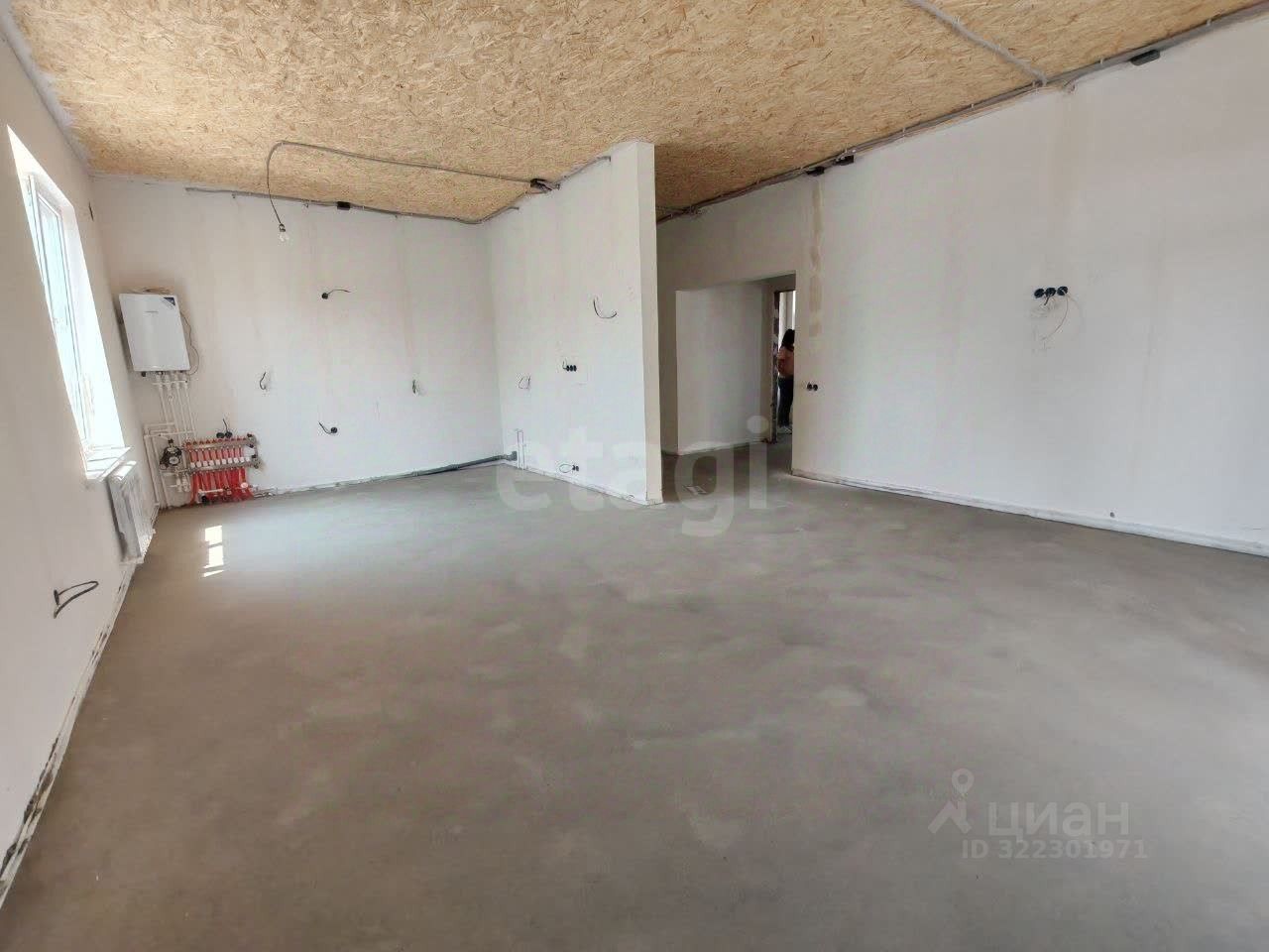 Внутренняя отделка выполнена на этапе предчистовой: полусухая стяжка пола, механизированная штукатурка стен, утепление потолка эковатой. Установлен двухконтурный газовый котёл, система тёплого пола с регулировкой температуры и радиаторы под каждым окном для равномерного обогрева. Электрическая разводка включает 50 точек, окна — металлопластиковые с высокими шумо- и теплоизоляционными свойствами. Входная дверь стальная, усиленная.