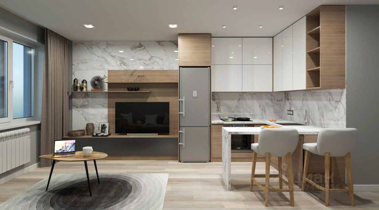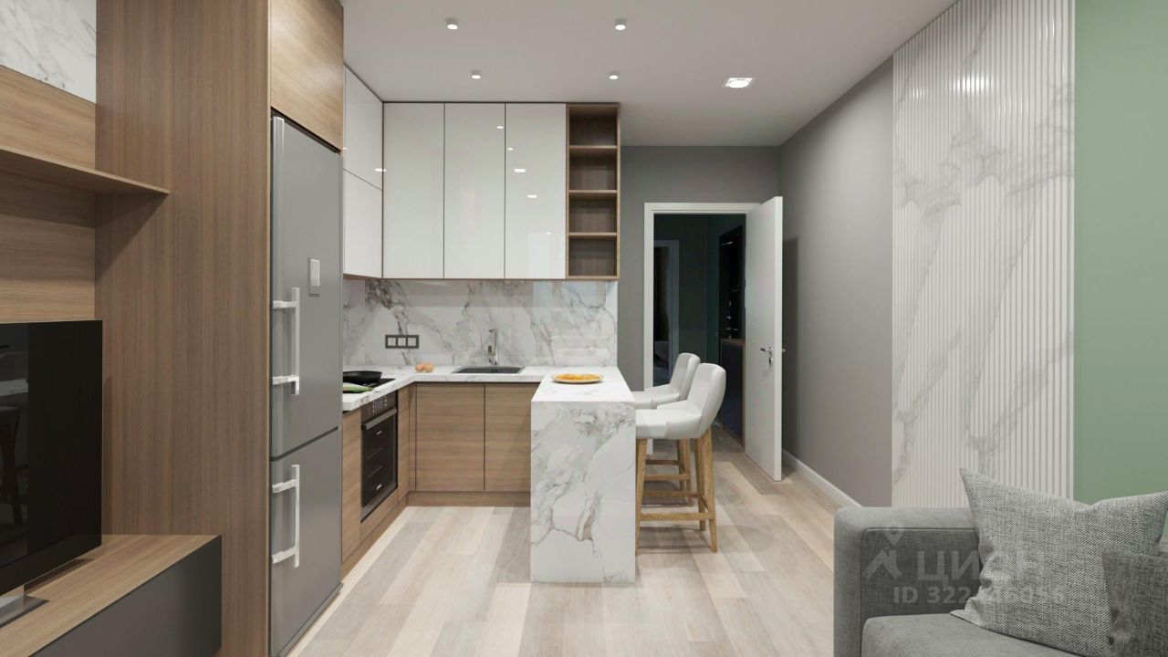 Просторная светлая кухня-столовая площадью 17,4 м² станет любимым местом для приготовления и принятия пищи, встречи гостей и любимым местом всей семьи.