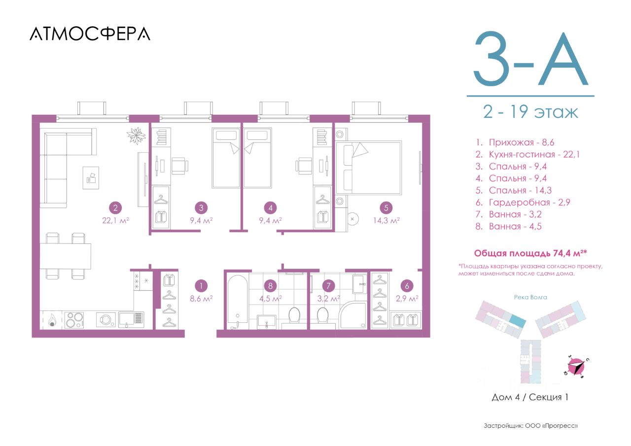 Живи в Атмосфере Жилой комплекс ''Атмосфера'' — уникальный проект линейки PRO MAX. Многоуровневая закрытая дворовая территория, авторская концепция холлов, сервис на уровне пятизвёздочного отеля. Уединённая локация между двумя водными пространствами — рекой Волгой и Приволжским затоном. На безопасной приватной дворовой территории ведётся круглосуточное видеонаблюдение. Для самых маленьких здесь оборудован детский игровой центр — кидс клаб, а для взрослых — премиальная кофейня с чарующим видом на Волгу. ''Атмосфера'' выводит понятие ''комфорт'' на совершенно иной уровень. Каждая деталь говорит о стремлении к совершенству.