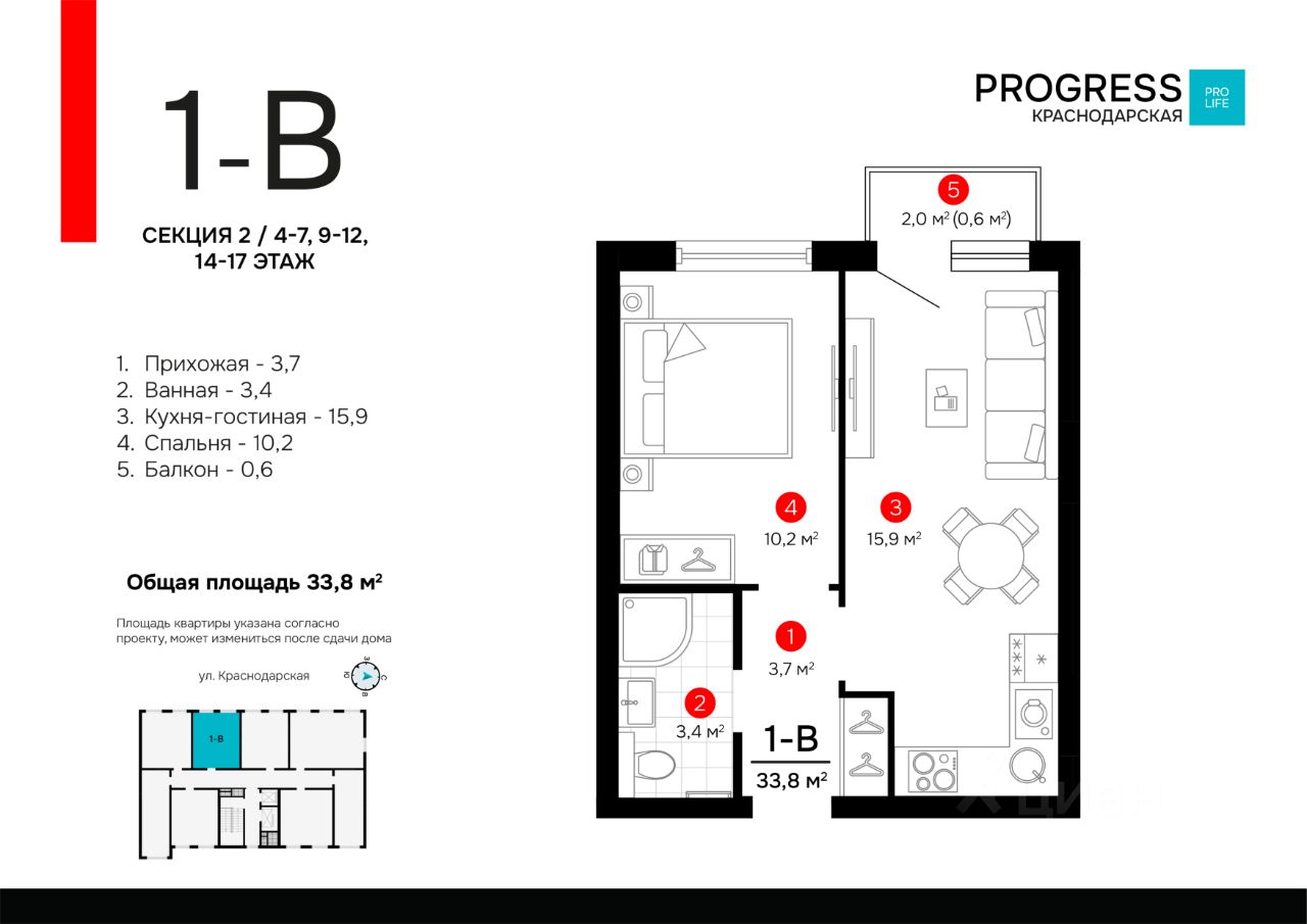 Продаётся 1-комнатная квартира в строящемся доме (Дом 1), срок сдачи: I-кв. 2028, общей площадью 33.82 кв.м., на 12 этаже. Новый жилой комплекс ''Точка'' от застройщика ''Будущее'' расположен по адресу: г. Астрахань, ул. Краснодарской, 43а