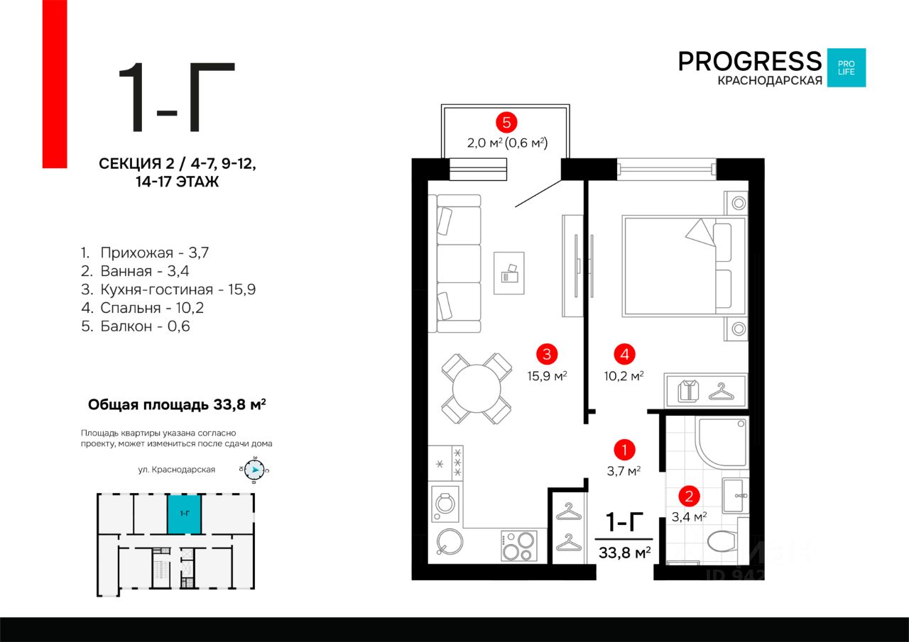Продаётся 1-комнатная квартира в строящемся доме (Дом 1), срок сдачи: I-кв. 2028, общей площадью 33.82 кв.м., на 14 этаже. Новый жилой комплекс ''Точка'' от застройщика ''Будущее'' расположен по адресу: г. Астрахань, ул. Краснодарской, 43а